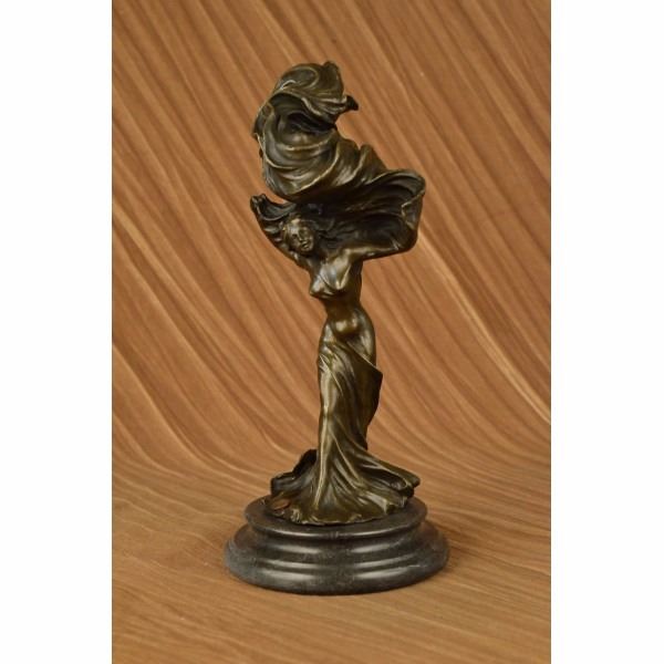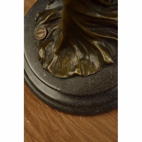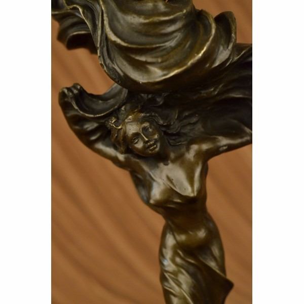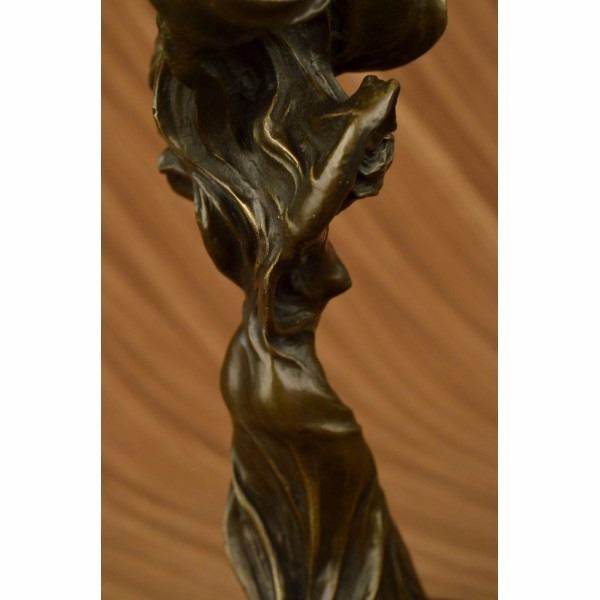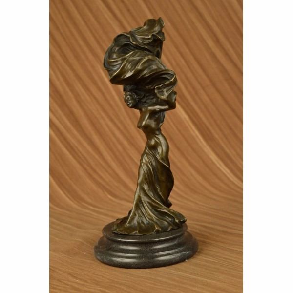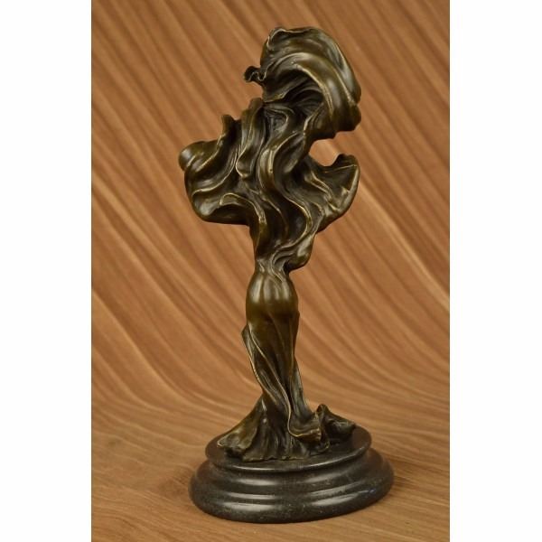 This statue is a conceptual representation of a nude girl standing upright with a dark cloud above her head. She stares straight ahead with a look of intense concentration. Her hands are covered by a cloth that encircles her head then swirls around her entire body and finally fuses with the base. This piece features a semi finished look that is highly appealing, where the finish of the bronze is created with a kind of brush stroke molded look. It is focused more on form than detail but this fact does not take away from the beauty, as seen in the way her hairline fuses with the contours of the cloth and is signed Milo.It features the lost wax method of casting, founded thousands of years ago, ensuring an exquisitely detailed sculpture that will add grace and beauty to your business or home. Condition: This sculpture is in perfect condition. Bronze Dimensions with Marble Base:Height 15" x Width 7" Marble Dimensions:Diameter 7" Height without base: 14" Weight :12 LBS Inventory : 17Y2555171