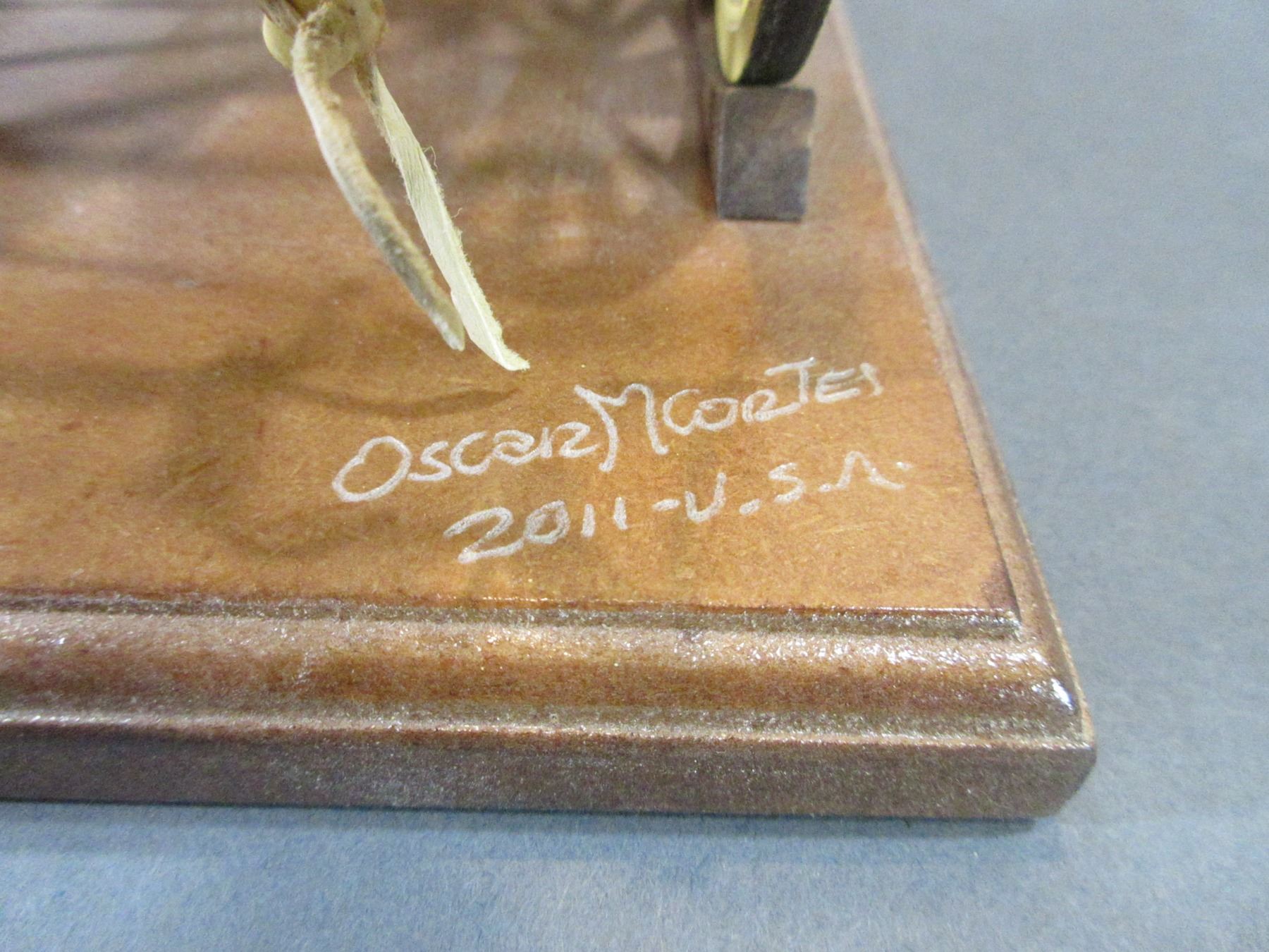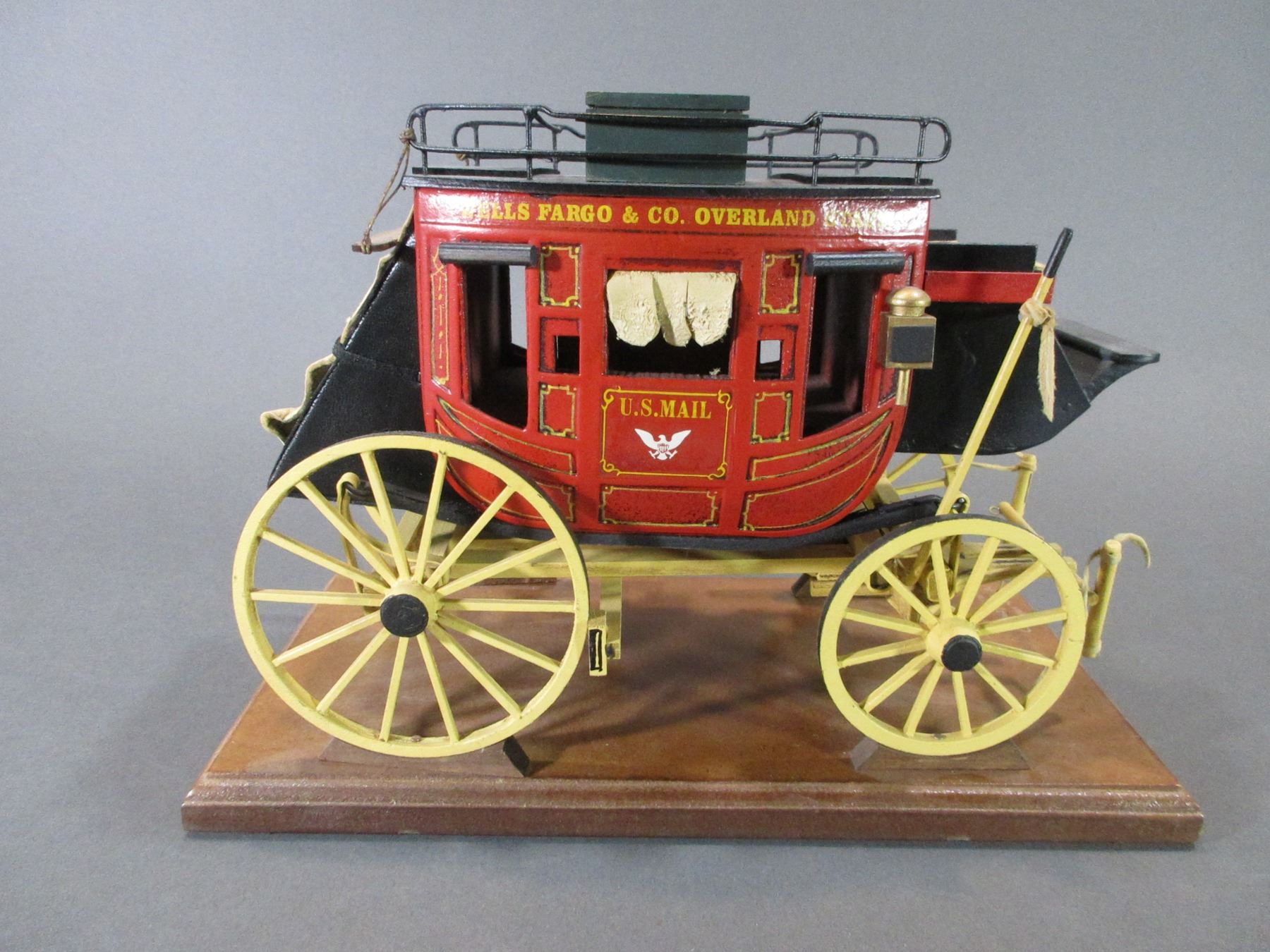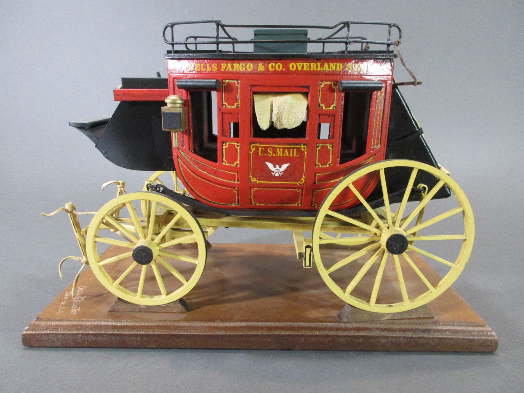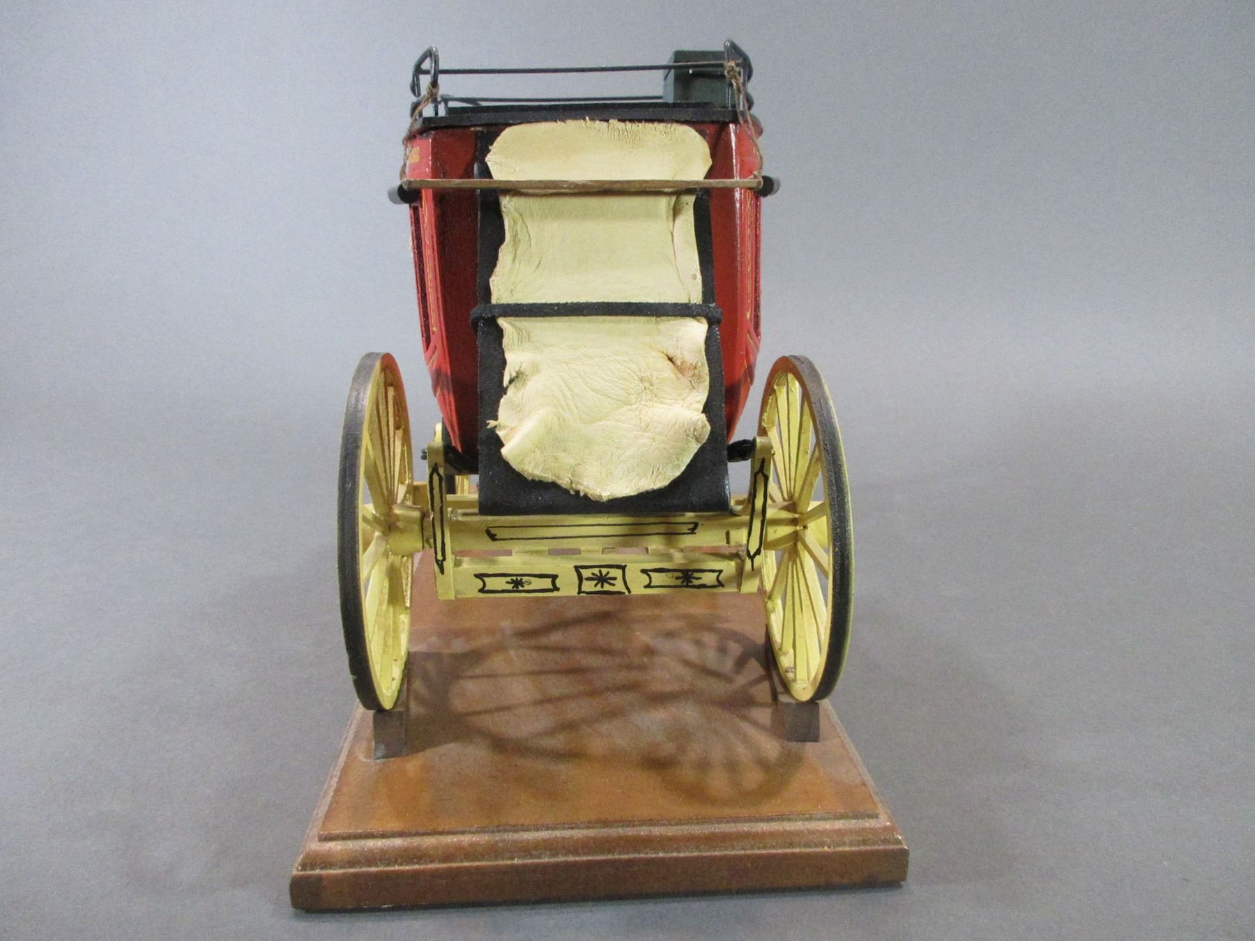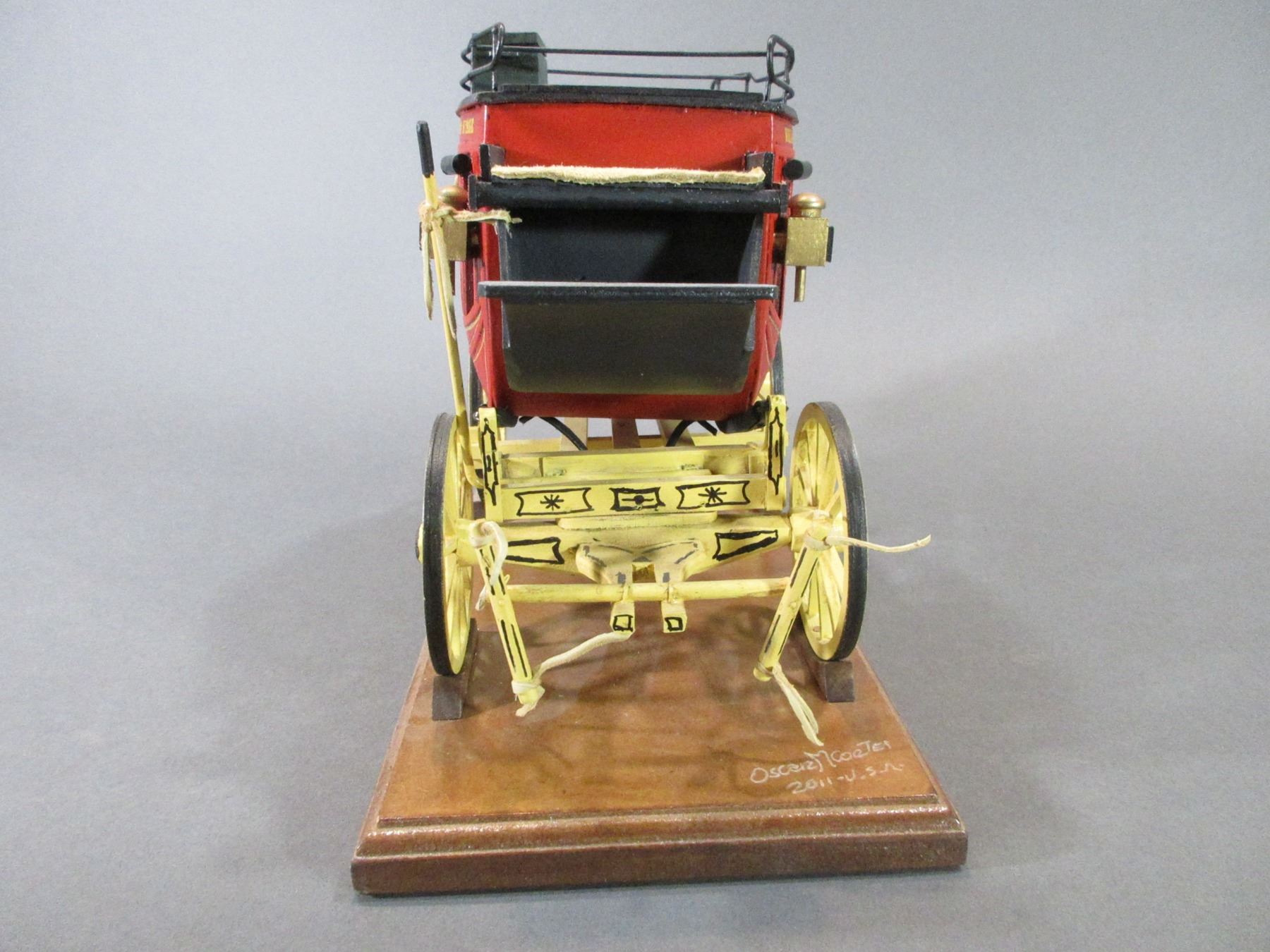 Signed Oscar Cortes Wells Fargo Mini Stagecoach- Hand Carved- 9"H- Base 13" X 6"