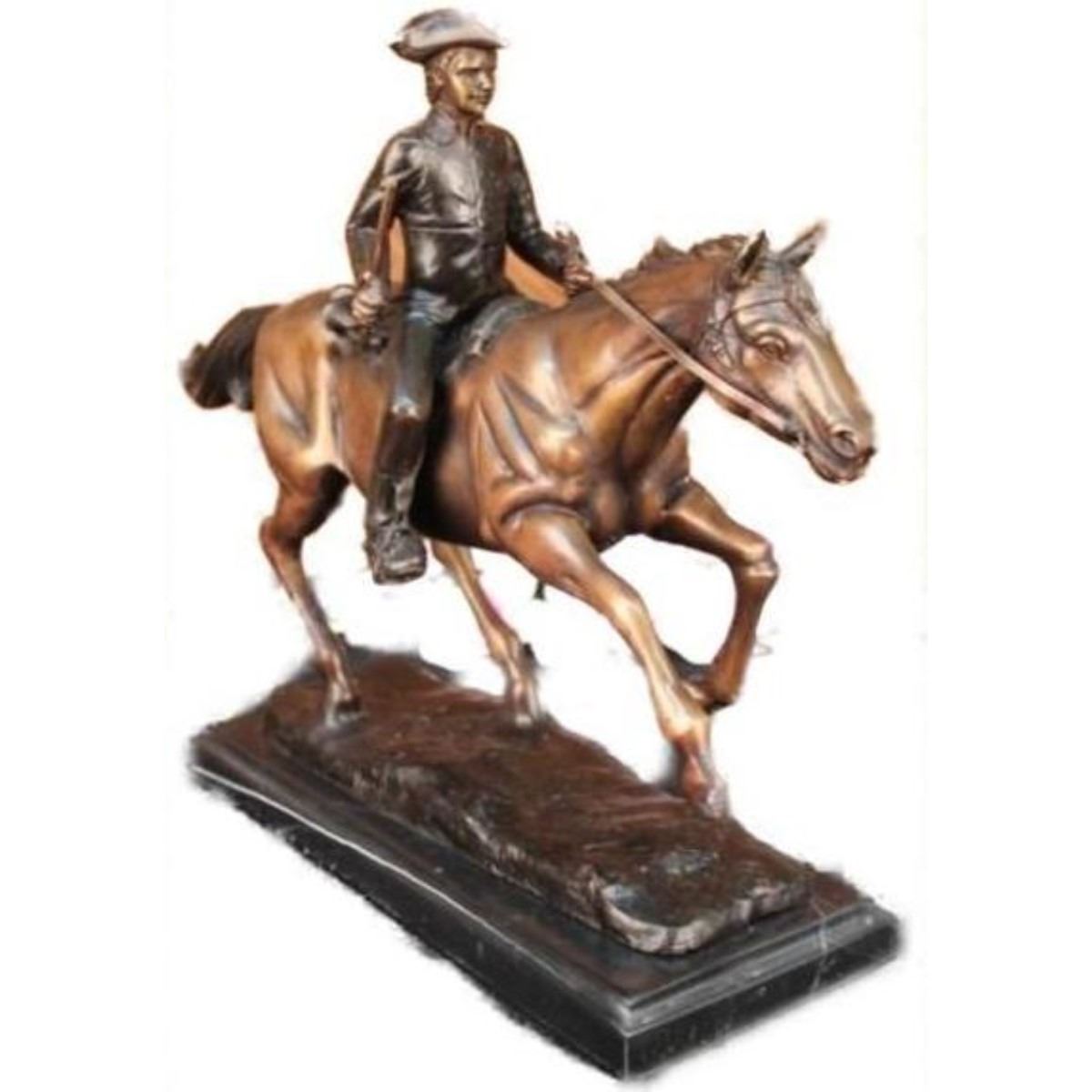 After Pierre Jules Mene, ( French 1810 - 1879 ) French Soldier on Horse. Lost wax casting bronze, with brown patina, mounted on marble base. 14 1/2" X 19". 17lbs.