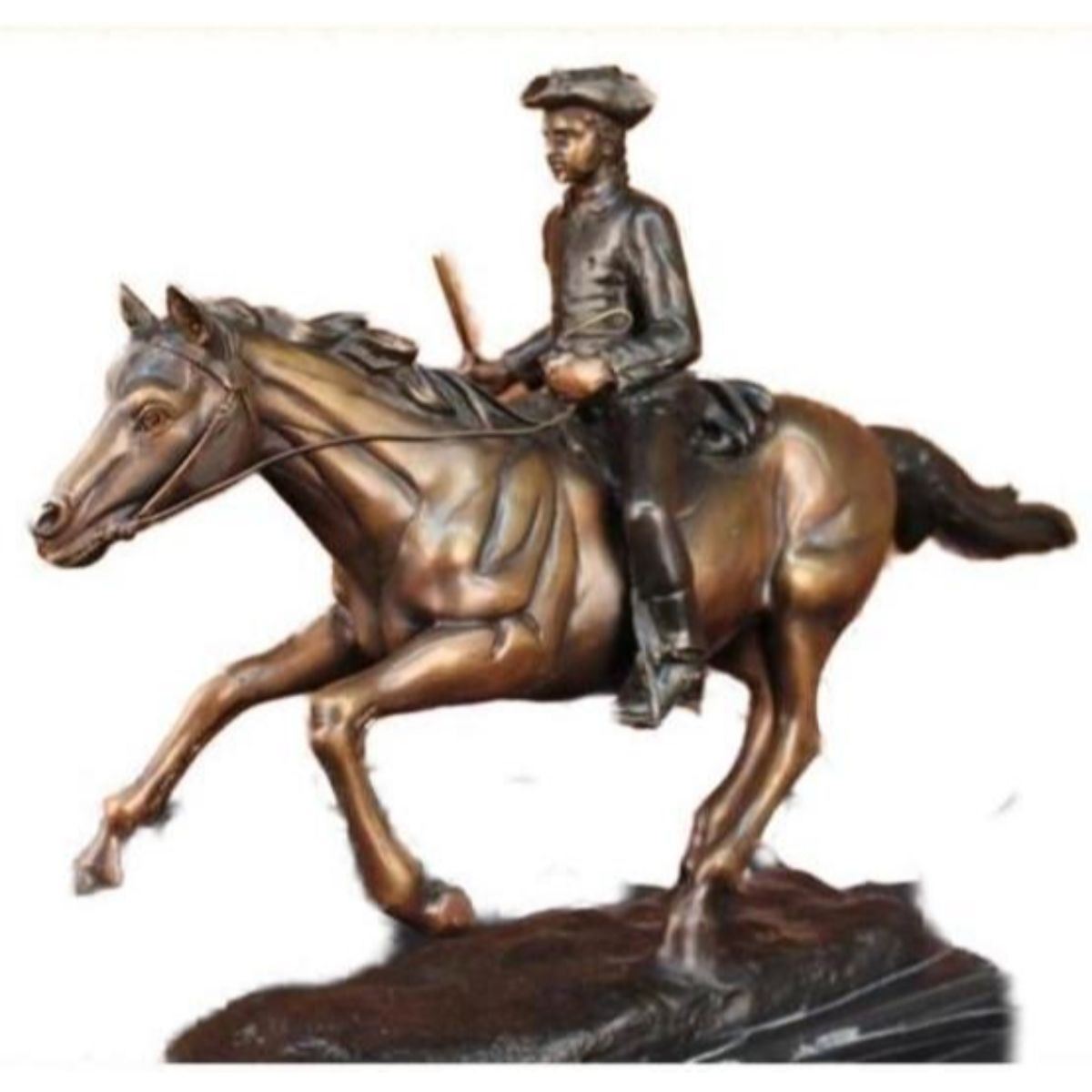After Pierre Jules Mene, ( French 1810 - 1879 ) French Soldier on Horse. Lost wax casting bronze, with brown patina, mounted on marble base. 14 1/2" X 19". 17lbs.