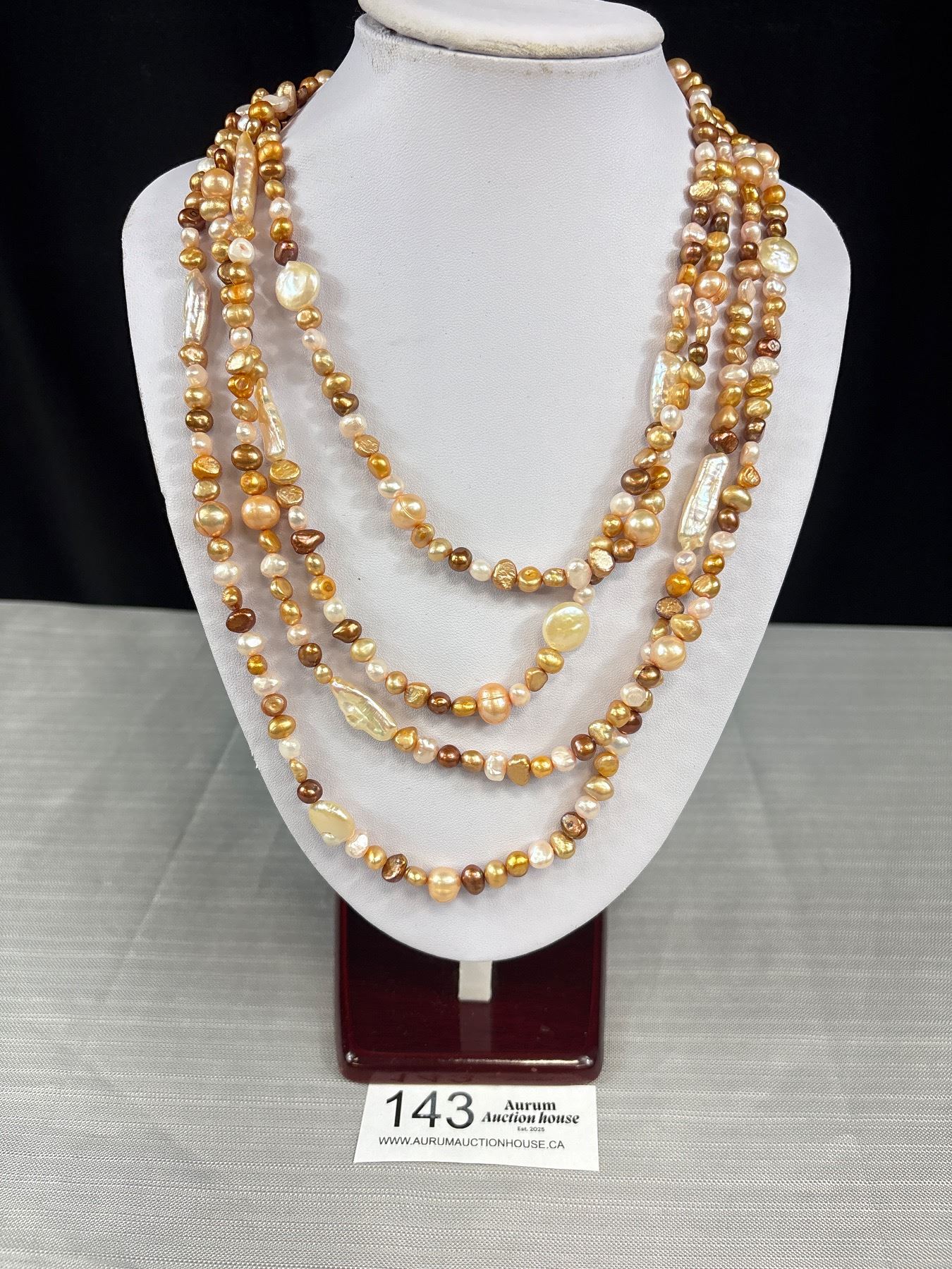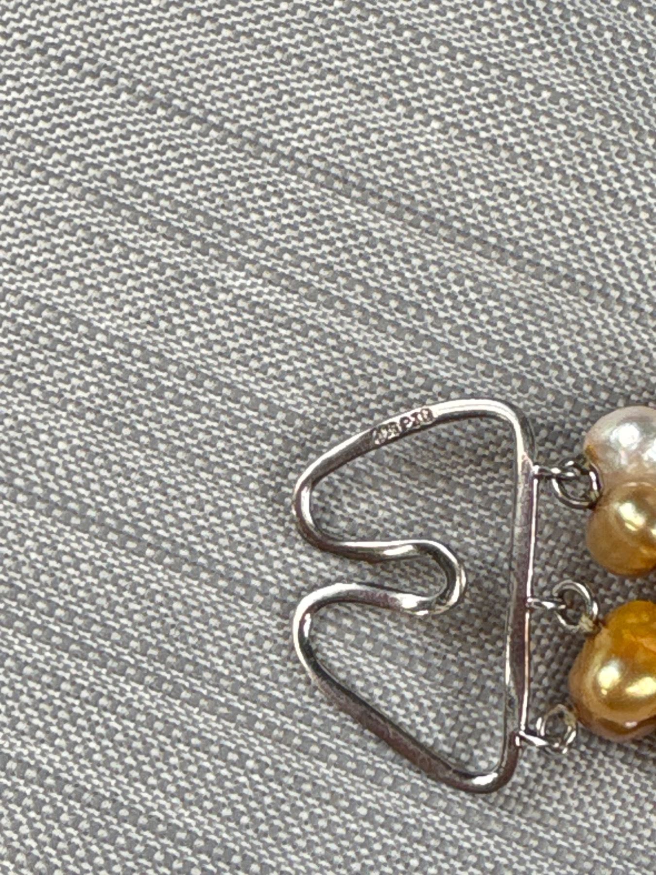 Signed PJS 925 Sterling Silver Unique Clasp on 4 Strand Real Freshwater, Baroque, Coin Pearl Necklace - Longest Strand 24" - Marked and Tested