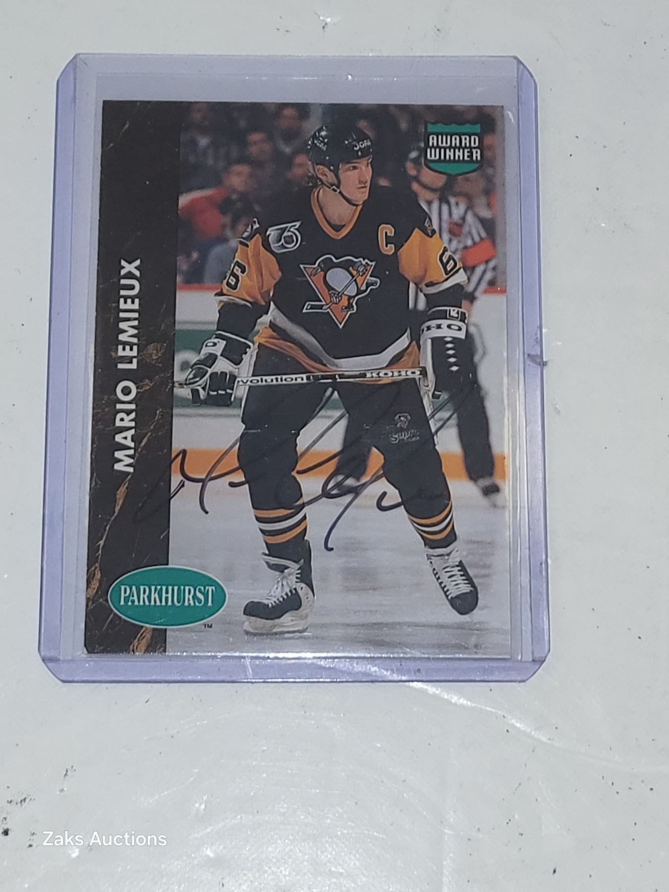 Signed Parkhurst Mario Lemieux NHL Hockey Card in Top Loader - Mint - Unauthenitcated