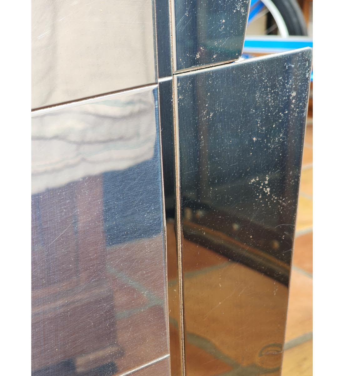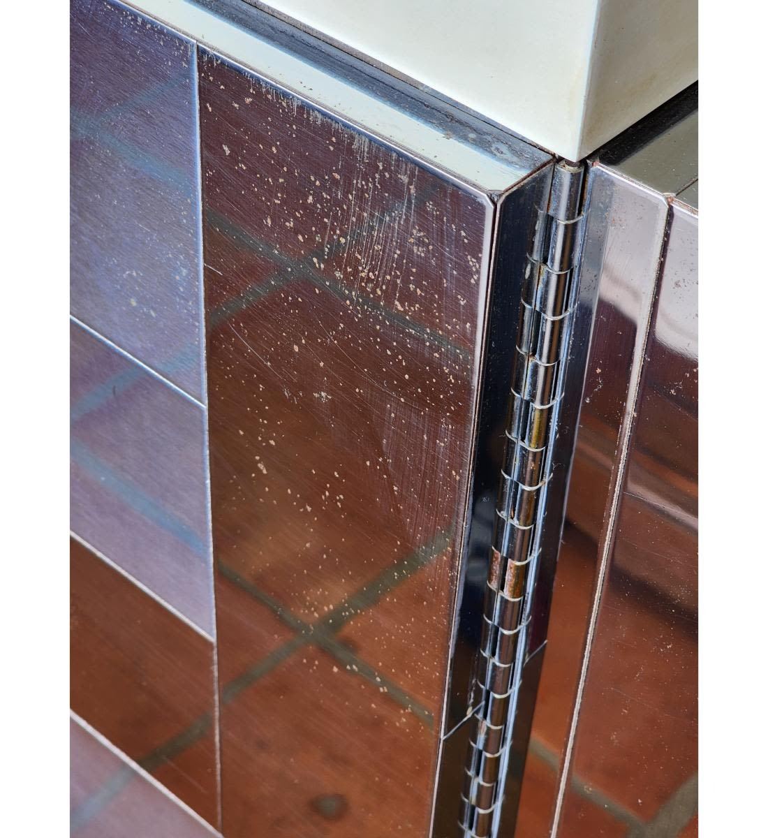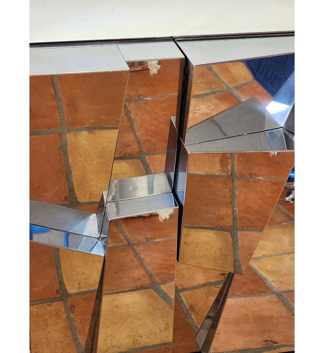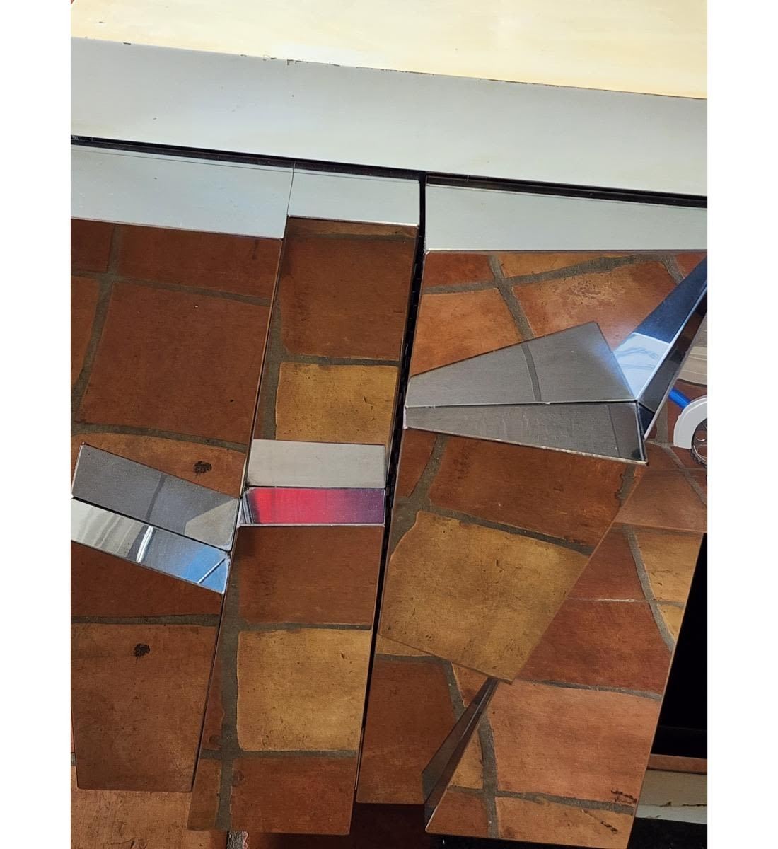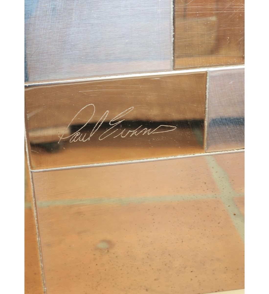 Signed Paul Evans Mid Century Modern Brutalist Faceted Cabinet. Measure 45" Wide X 32.5" Tall X 23 3/4" Deep. This Piece Will Need Some TLC, Some Small Dings Present And Some Light Pitting In Some Areas, I’ve cleaned up some but would prefer buyer to do their own cleaning. The Laminate Needs To Be Cleaned.