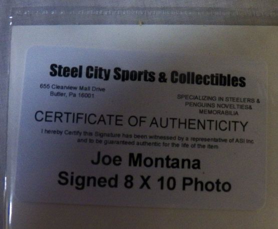 Joe Montana 8" x 10" signed Photograph with COA from Steel City Sports & Collectibles