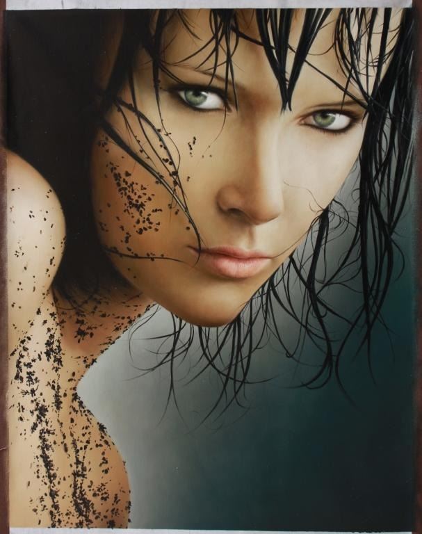21st century photo realism, oil on linen canvas painting. Brunette model. Signed on the reverse R. Bianco.