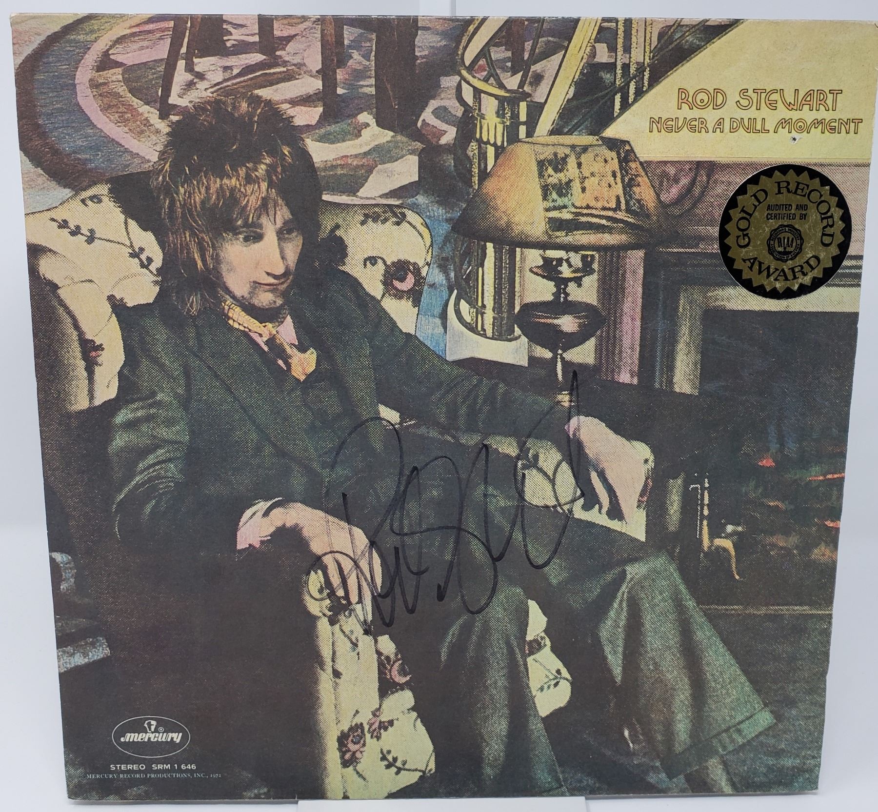 Signed Rod Stewart Never A Dull Moment Album Cover