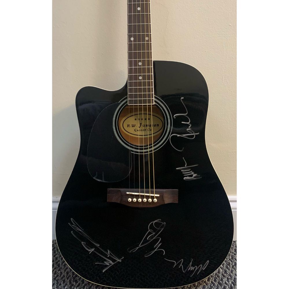Signed by Mick Jagger , Keith Richards, Ronnie Wood, Bill Wyman, and Charlie Watts