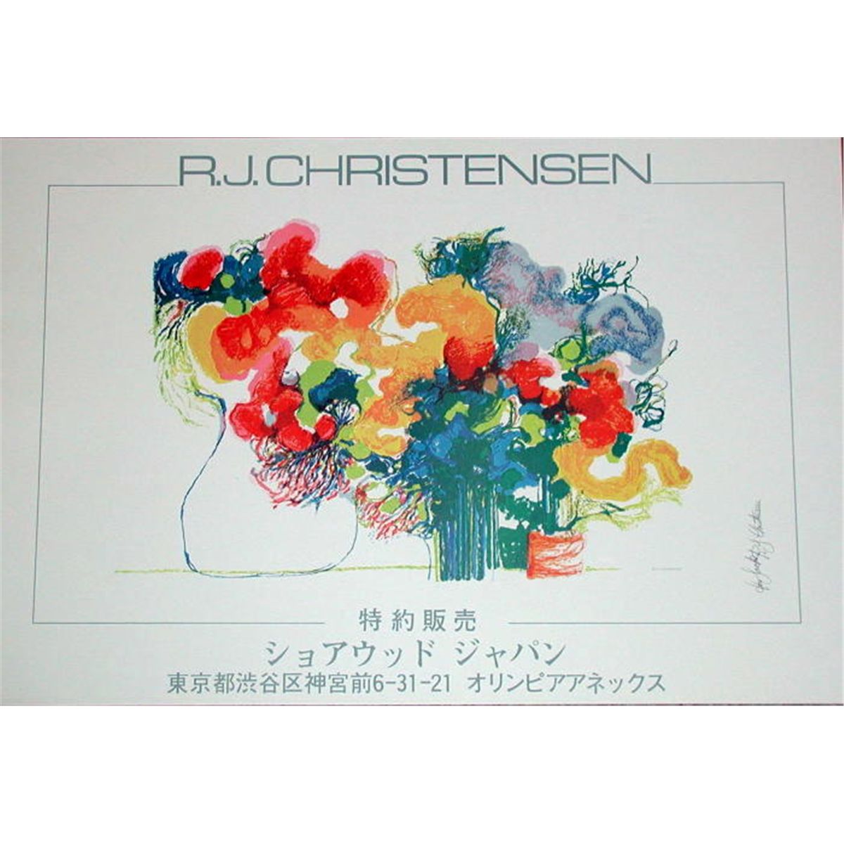 Lithographic poster from the popular impressionist painter and printmaker, Ronald J.Christensen's 1980 show in Japan. Signed and dedicated, "To Jack". 23"x34". Domestic shipping-$20, International depends upon location.
