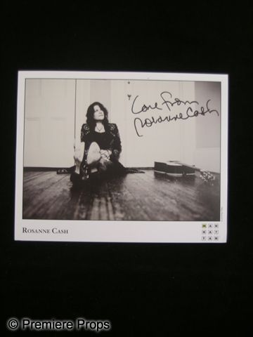 This is black & white/sepia style autographed photo of singer-songwriter Rosanne Cash. Rosanne Cash, the eldest daughter of country music icon Johnny Cash, won a Grammy in 1985 for her single 'I Don't Know Why you Don't Want Me,' and has received nine other Grammy nominations. The photo is signed 'Love from Rosanne Cash' in black ink. (measures approx. 8" x 10")