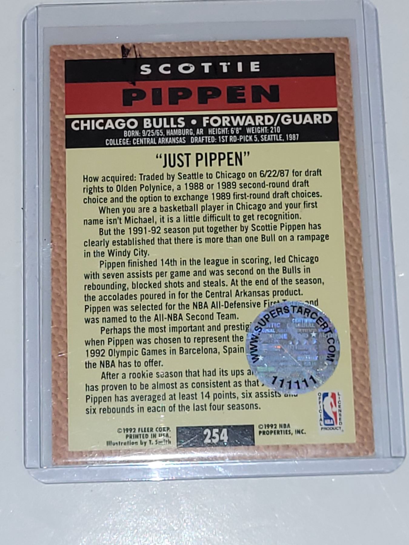 Signed Scottie Pippen Chicago Bulls NBA Basketball Card - Unauthenticated
