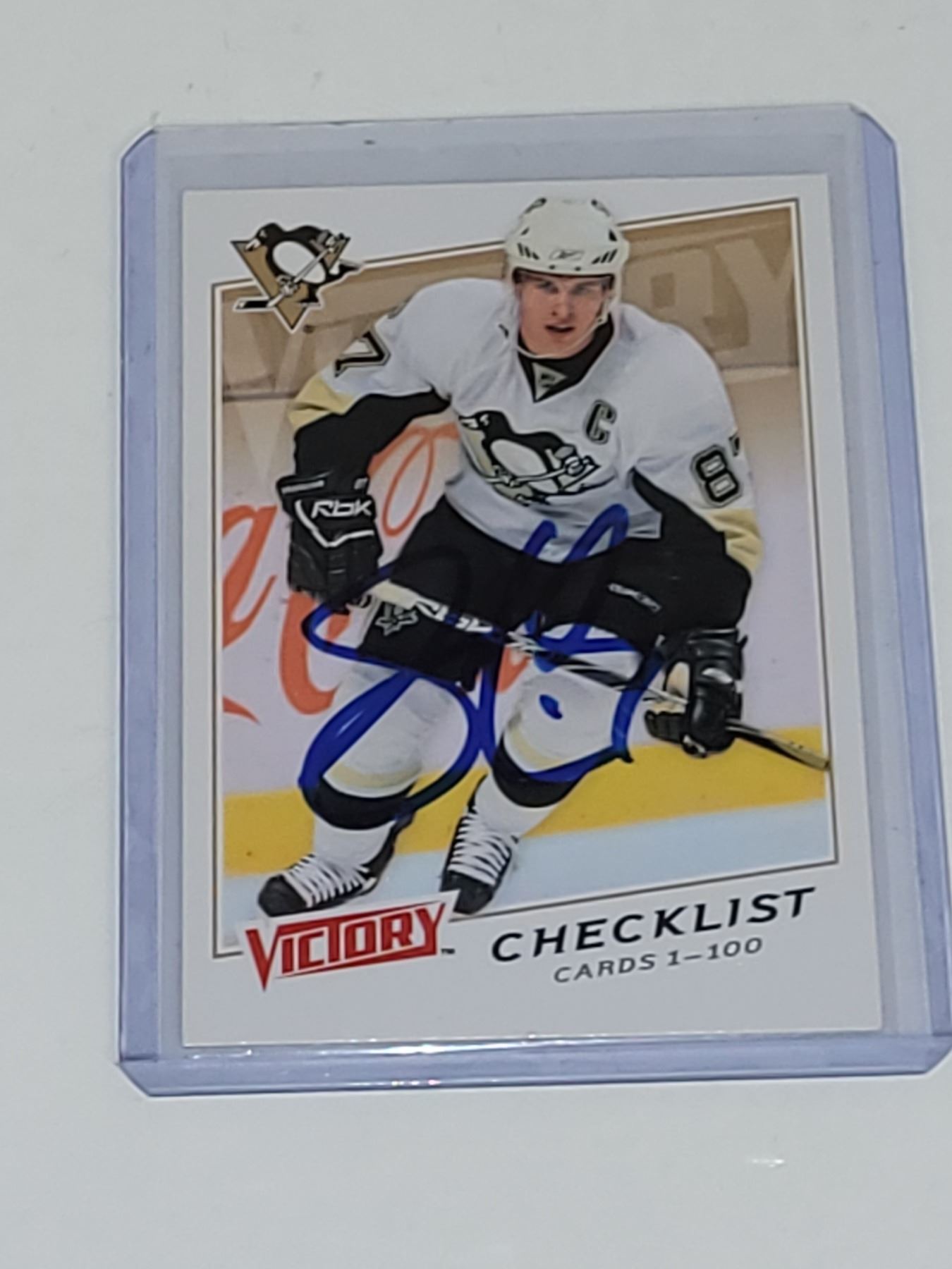 Signed Sidney Crosby Victory Checklist Hockey Card in Top Loader - Mint - Unauthenticated