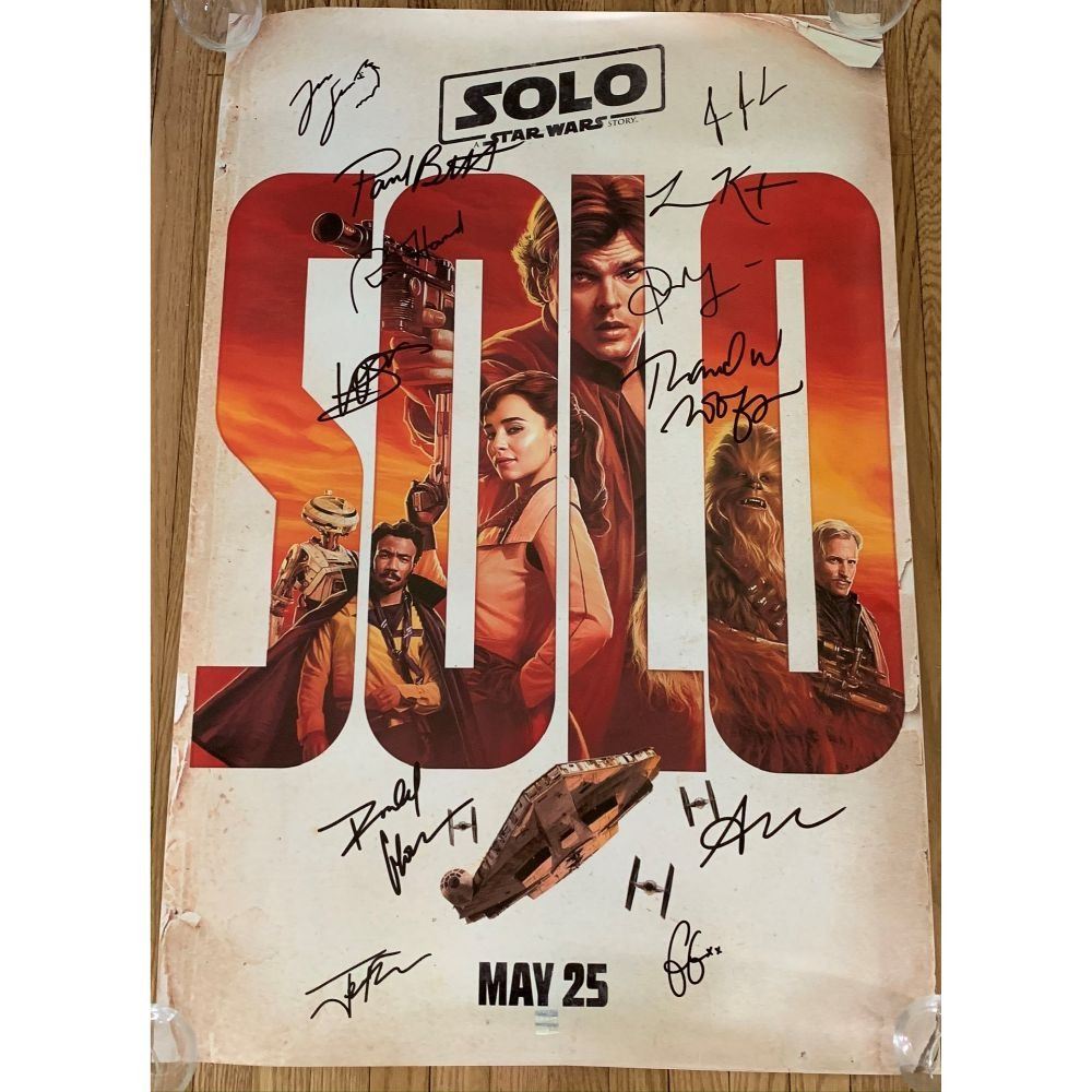 Signed by Alden Ehrenreich, Emilia Clarke, Donald Glover, Thandie Newton, Paul Bettany, Warwick Davis, Woody Harrelson, Jon Favreau, Ron Howard, and George Lucas