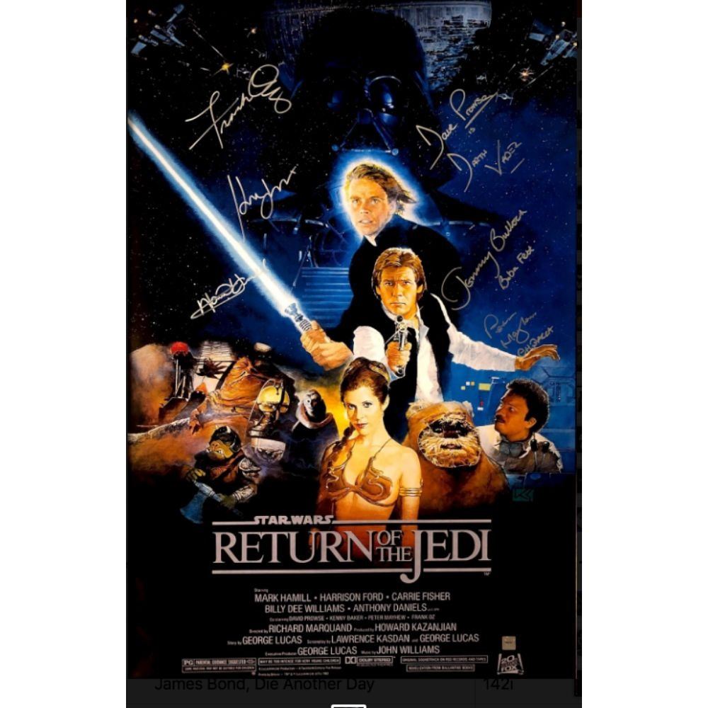Signed by David Prowse, Peter Mayhew, Frank Oz, Jeremy Bulloch, Mark Hamill, amd Harrison Ford