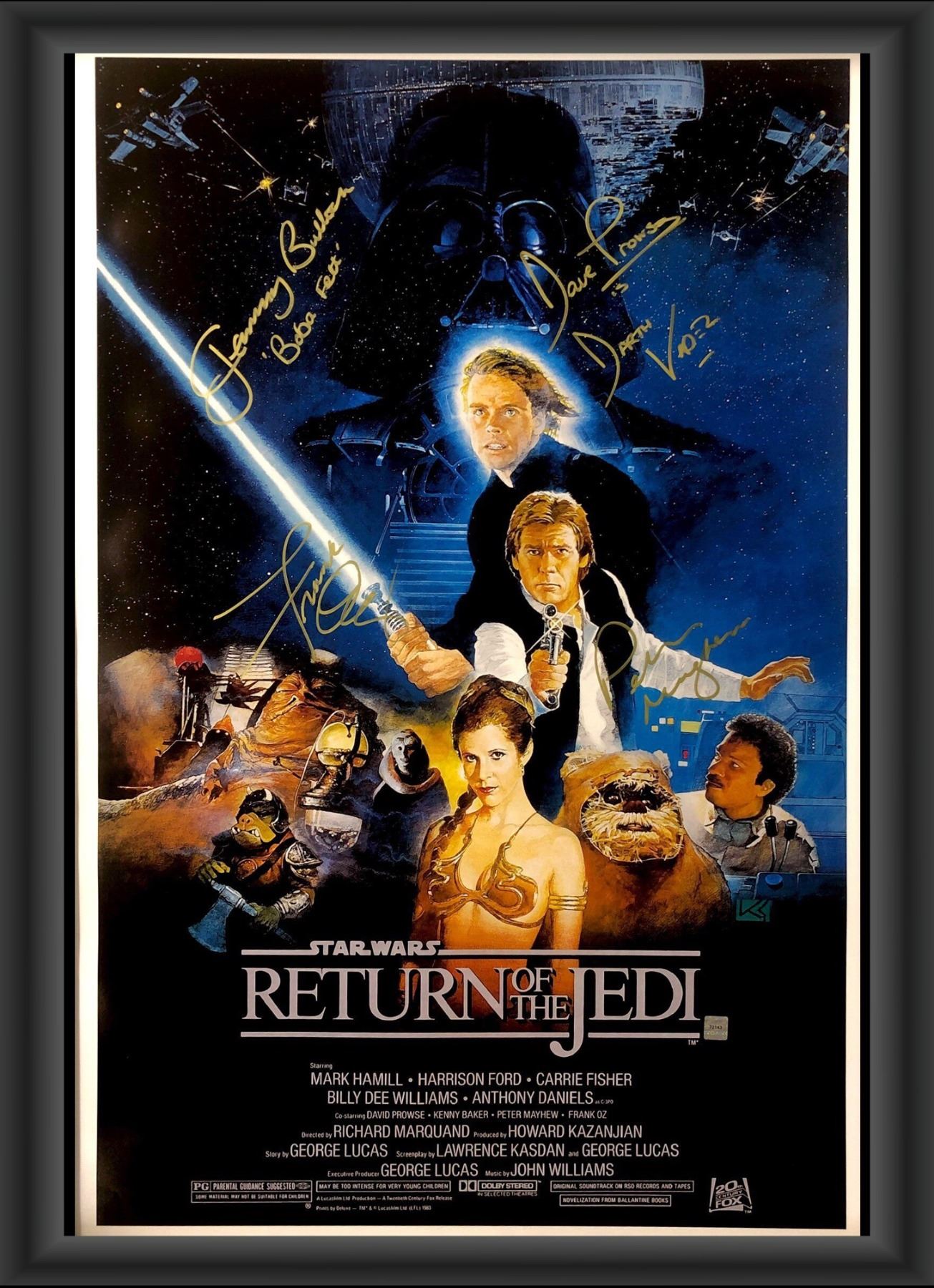 Signed by David Prowse, Peter Mayhew, Frank Oz, and Jeremy Bulloch