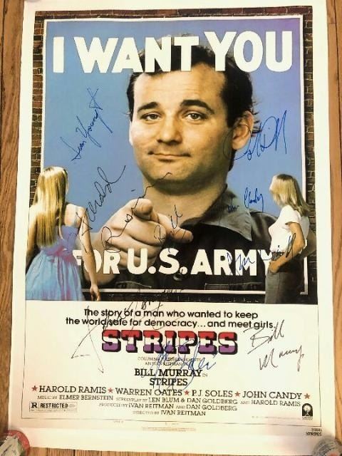 Signed by Bill Murray, Harol Ramis, Warren Oates, P.J. Soles, John Candy, John Larroquette, Lance LeGault, Judge Reinhold, Ivan Reitman