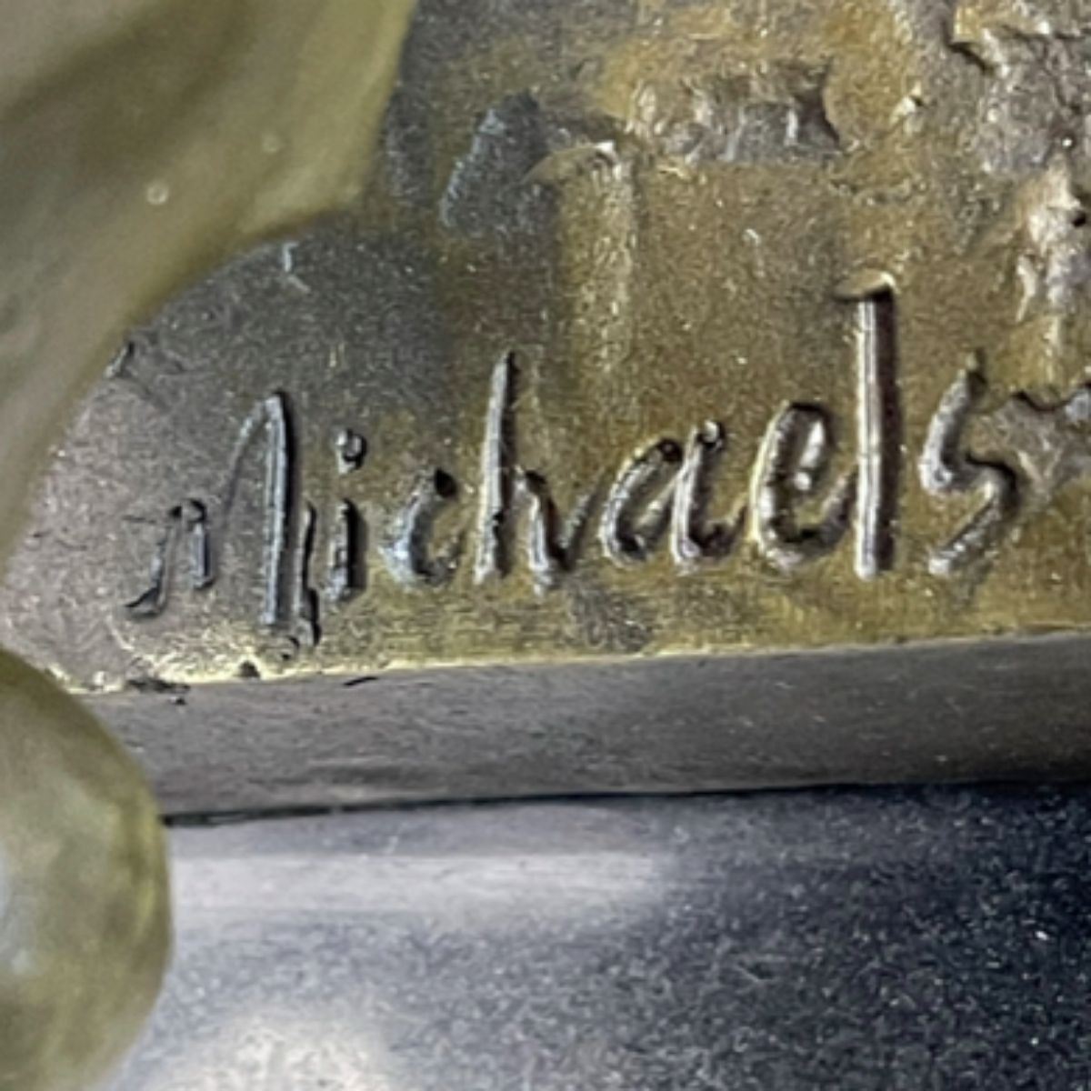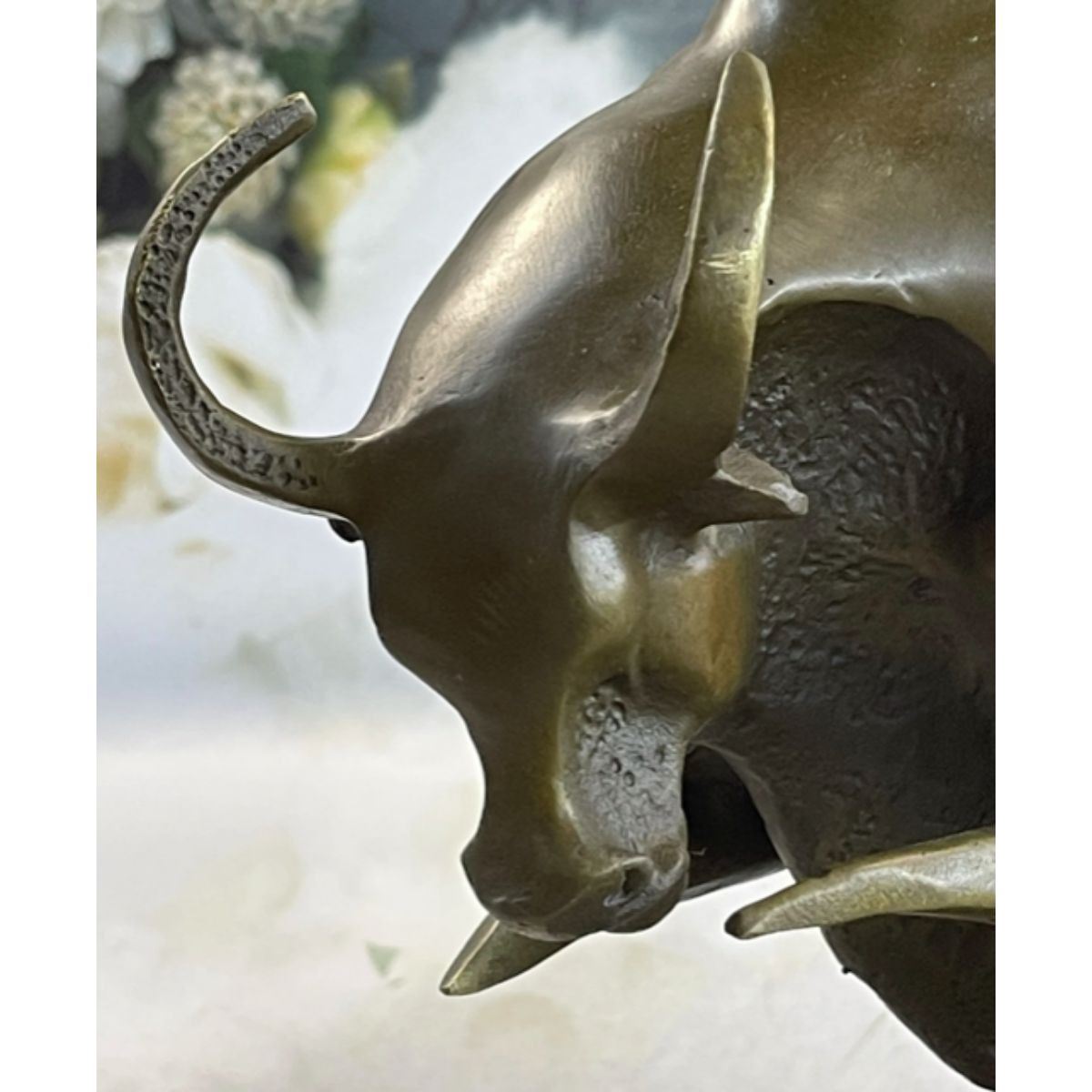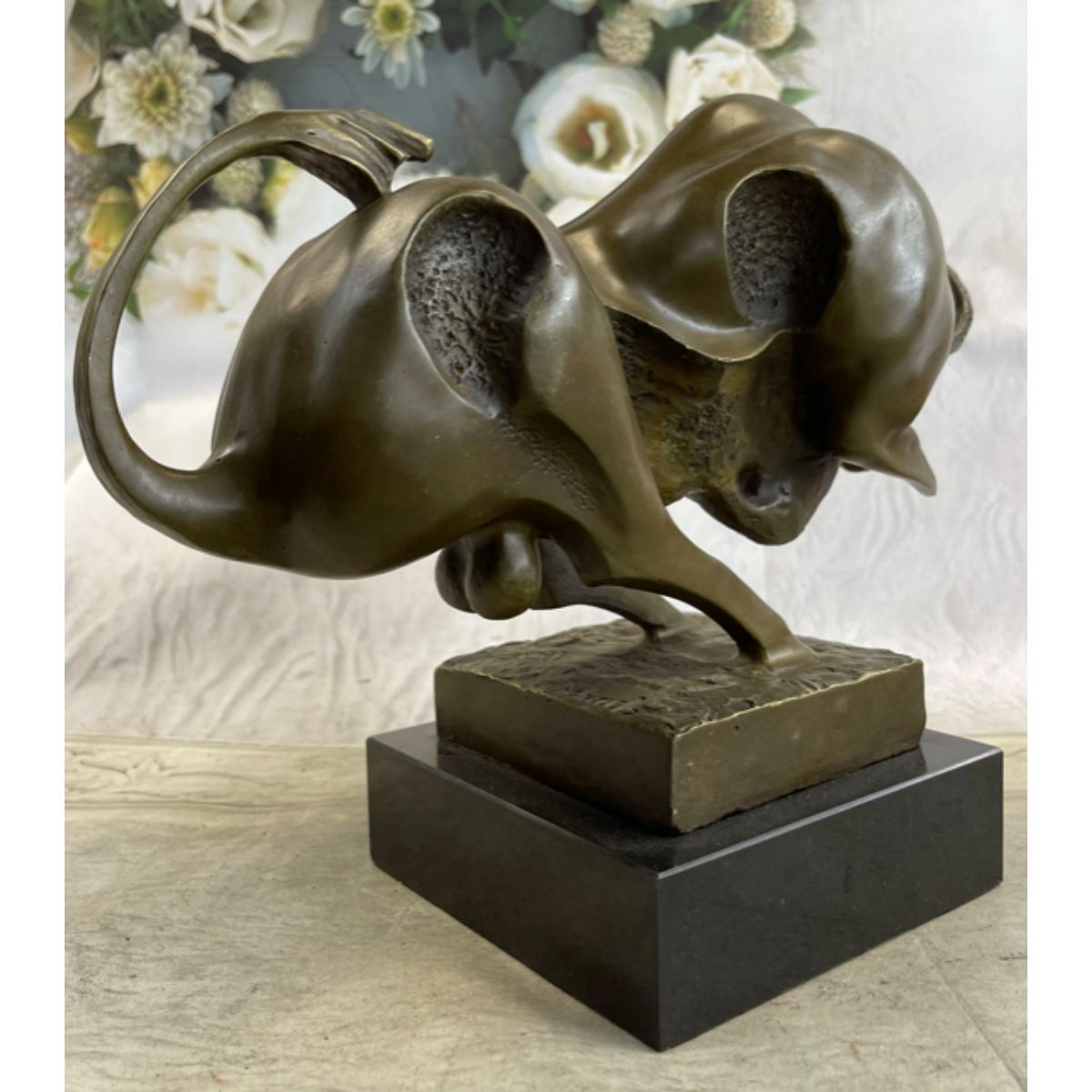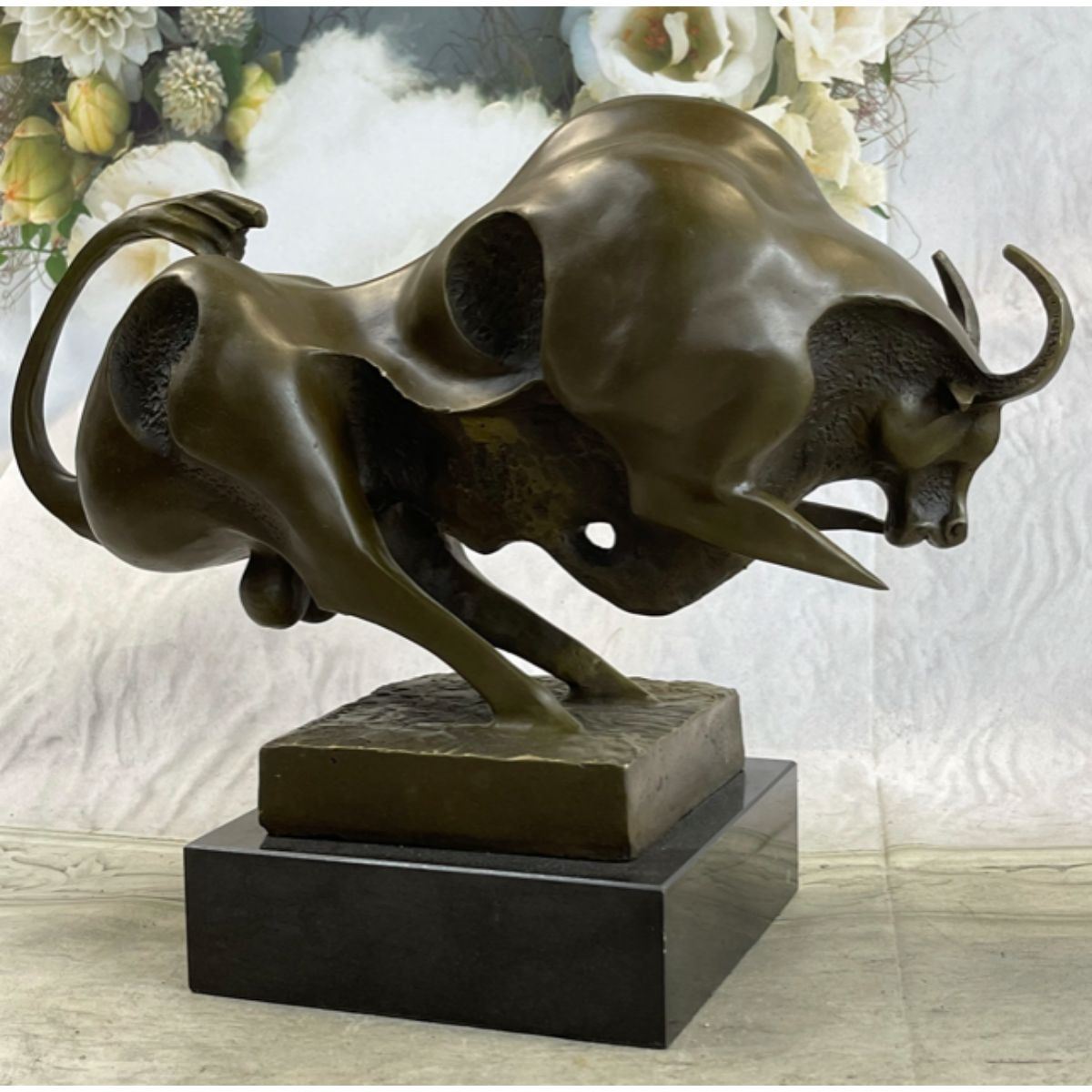 Signed Surrealist Charging Bull Sculpture. Lost wax casting method bronze, with brown patina, mounted on a marble base. Signed "Michaels". 10" X 14". 17lbs. Â