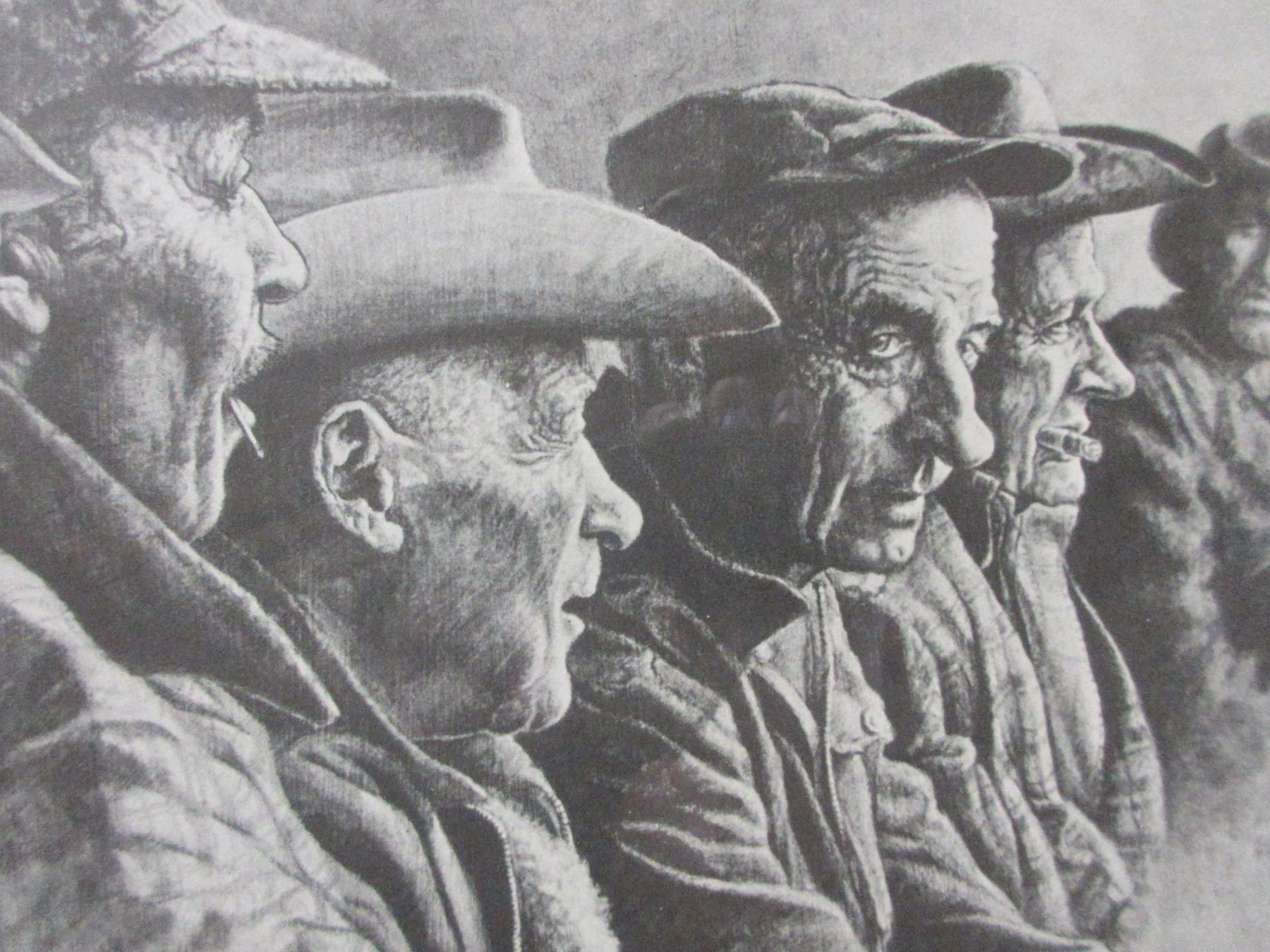 Signed T Saubert Print- "Two Bit Steers"- 1976- 25" X 19"