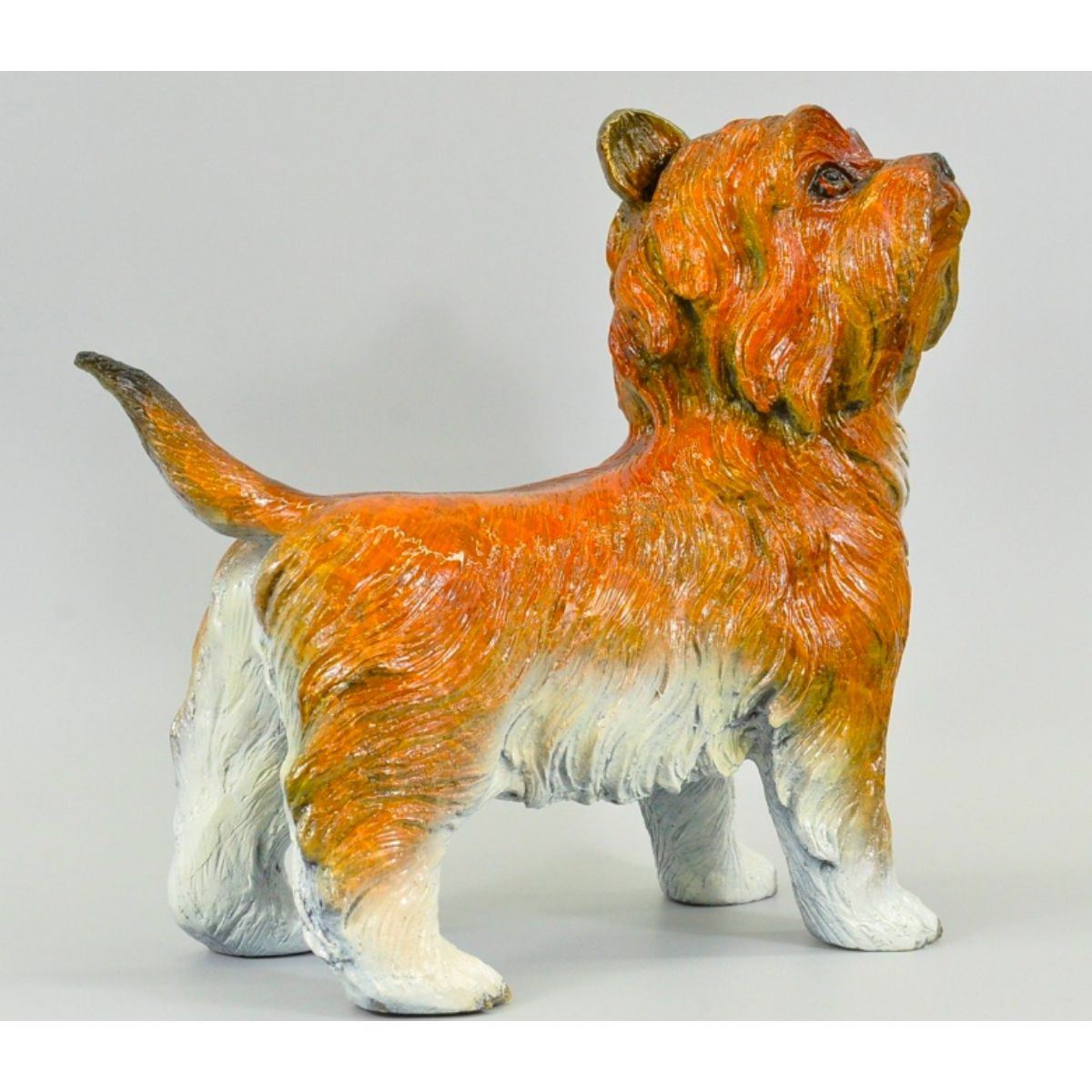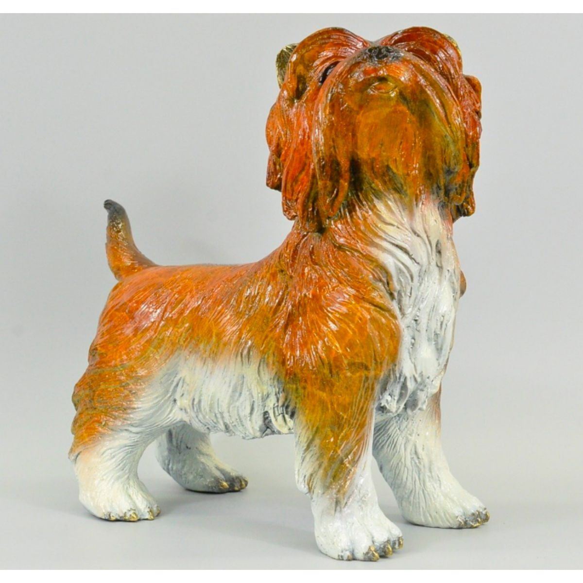 Little Terrier Dog sculpture. Lost wax casting method bronze, with colored patina. Signed by the artist, Moigniez. 13" H X 14" W. 15lbs.