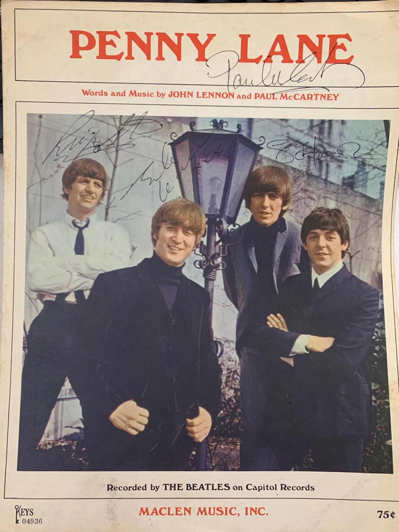 Signed by Paul McCartney, John Lennon, George Harrison and Ringo Starr