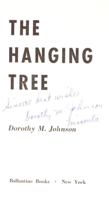 This lot contains a Signed 1st edition "The Hanging Tree" by Dorothy M. Johnson. The book is in good condition, but the dust jacket has a large piece missing from the bottom. The book itself has some fading on the bottom of the binding. The book measures 8 1/4" T x 5 3/4" W x 1 1/2" D