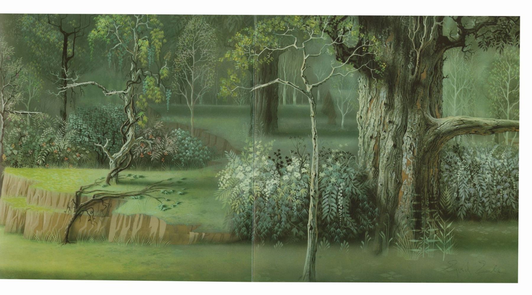 (Disney-MGM, c.1989) A rare signed booklet created to promote the new animation building at the Disney-MGM Studios at Walt Disney World. Signed by Eyvind Earle, this wonderful booklet contains examples of Disney animation cel set-ups, concept artwork, background paintings, and more. The booklet measures 8.5"x8.5" and is in very good condition with some creasing to the binding.