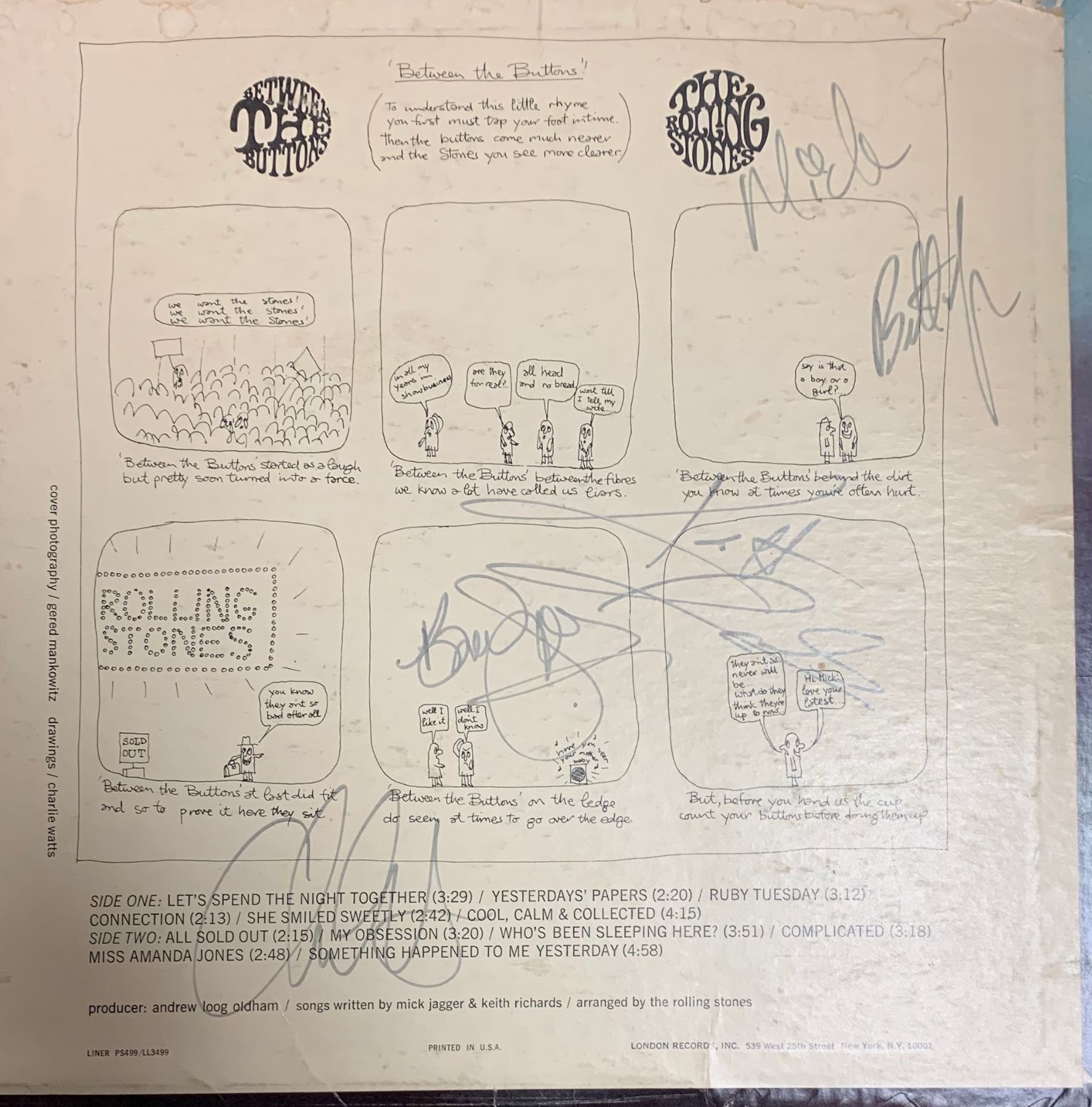 Signed by Mick Jagger, Keith Richards, Bill Wyman, Charlie Watts and Brian Jones