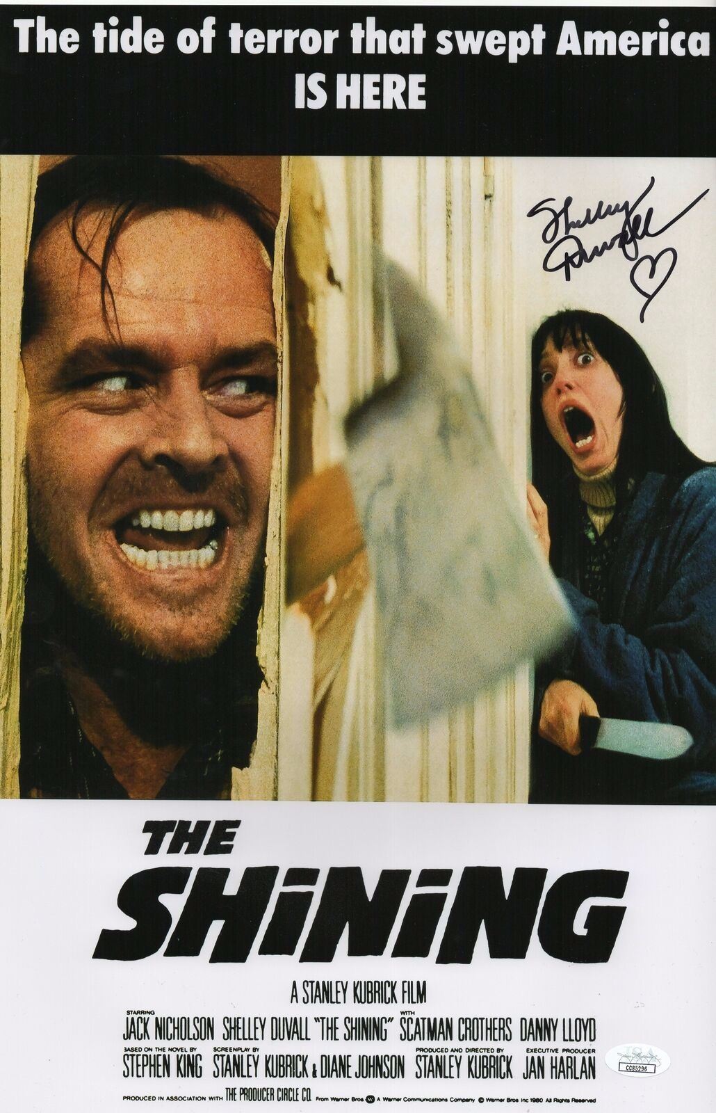 12x18 mini poster autographed by Shelly Duvall. This item is JSA authenticated. .This item comes with a Certificate of Authenticity from a third party authenticator. This Certification of Authenticity does not imply that the item will be certified by any other rival authentication companies. The accompanied certification is the only certification the auction company can confirm. These items are being sold as collectable pieces and there is no guarantee that this item can be resold on any online marketplace. Each of these companies has their own policies and politics.