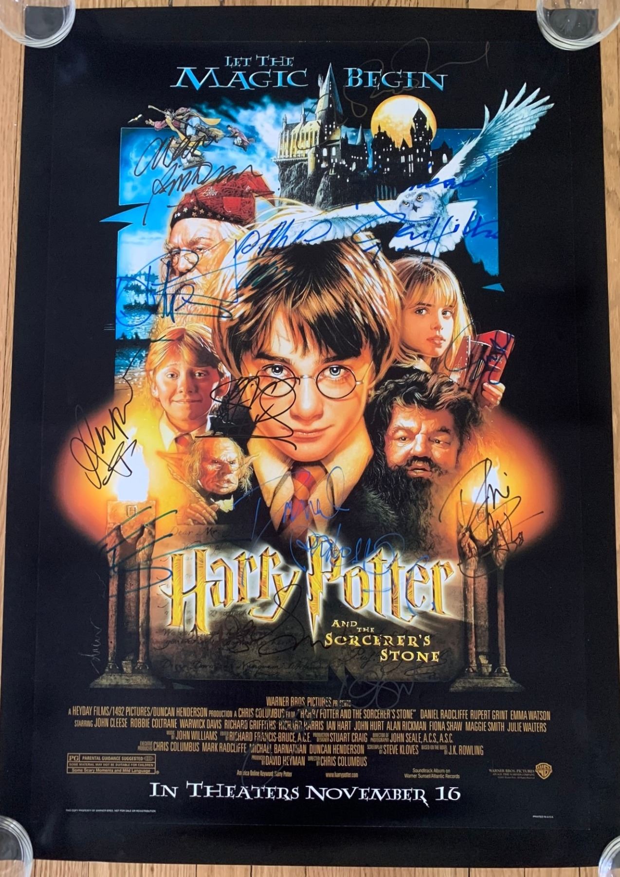 Signed by: Daniel Radcliffe, Emma Watson, Rupert Grint, Maggie Smith,Tom Felton, Verne Troyer, Julie Walters, John Cleese and Warwick Davis.