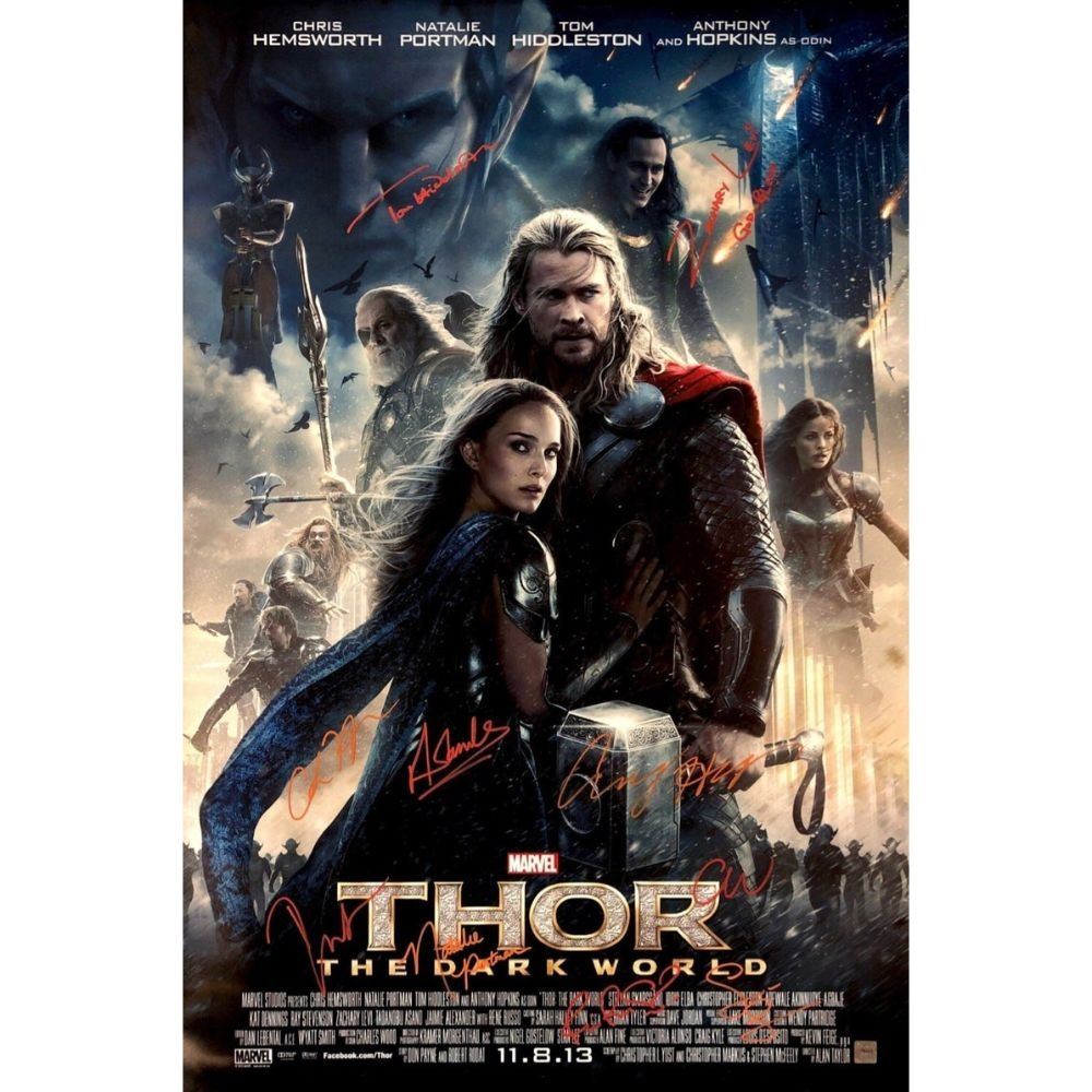 Signed by Chris Hemsworth, Natalie Portman, Tom Hiddleston, Anthony Hopkins , Zachary Levi, Stellan Skarsgård and 3 more