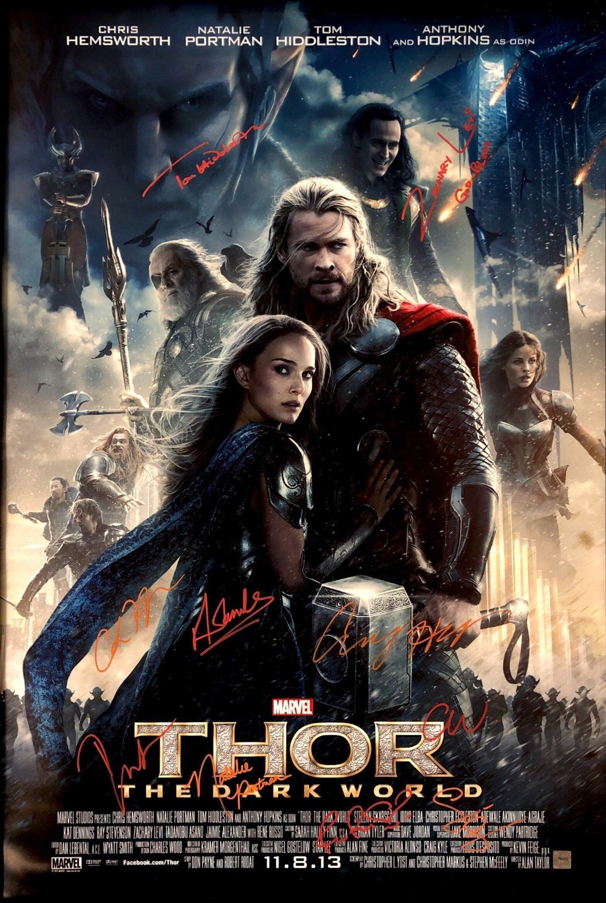 Signed by Chris Hemsworth. Natalie Portman, Tom Hiddleston, Anthony Hopkins , Zachary Levi. Stellan Skarsgård and 3 more