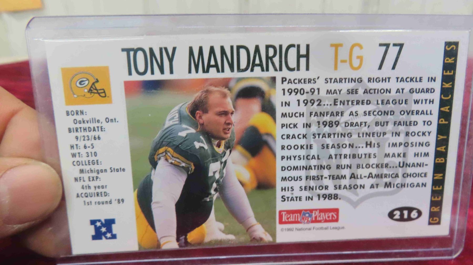 Signed Tony Mandarich Football Card