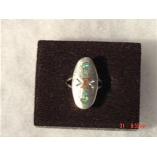 Here is a sterling signed by the designer and appears to be a Z? There is turquoise and coral inlay in this. It is size 7 and excellent condition