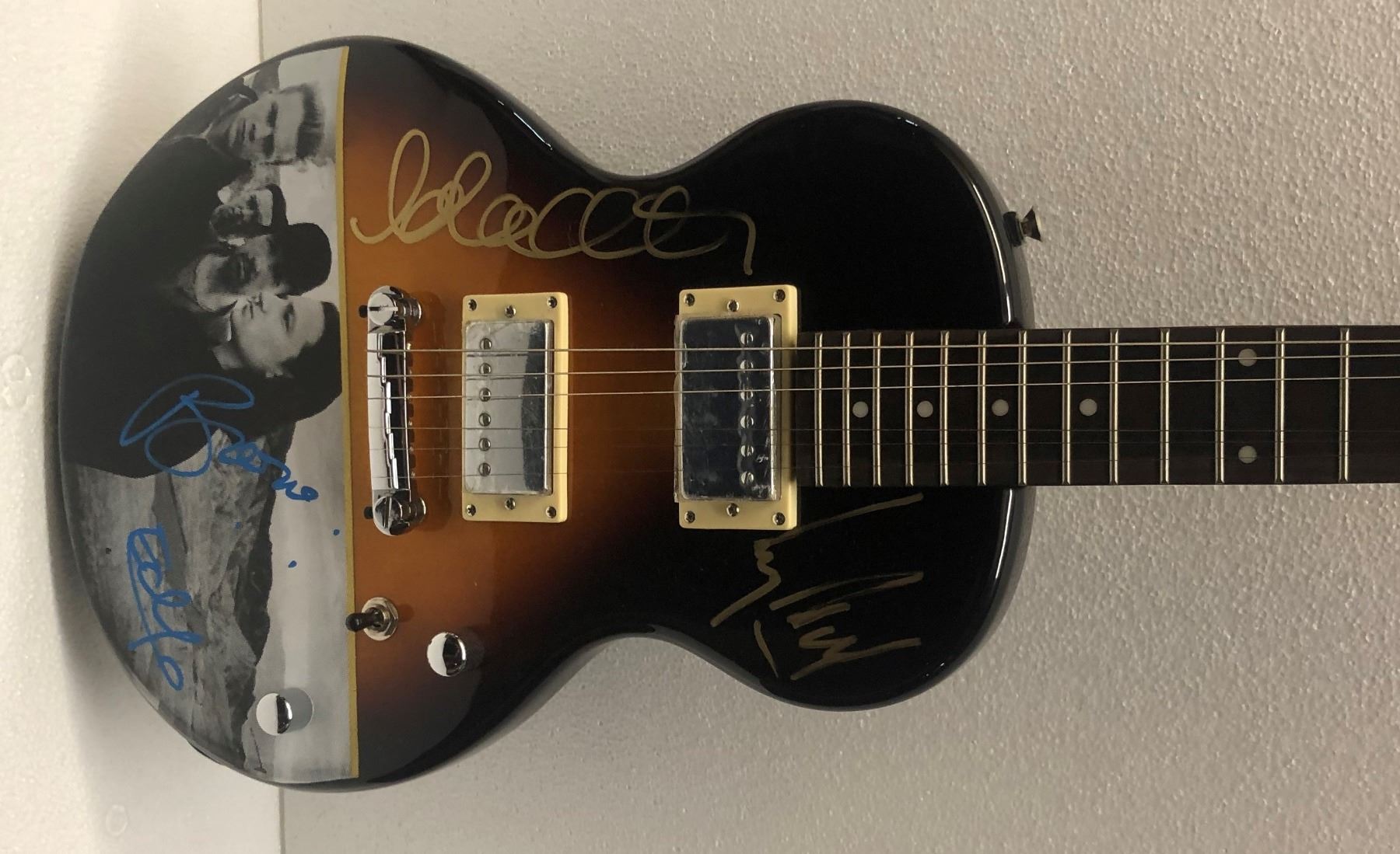 Signed by Bono, the Edge, Adam Clayton, and Larry Mullen Jr.