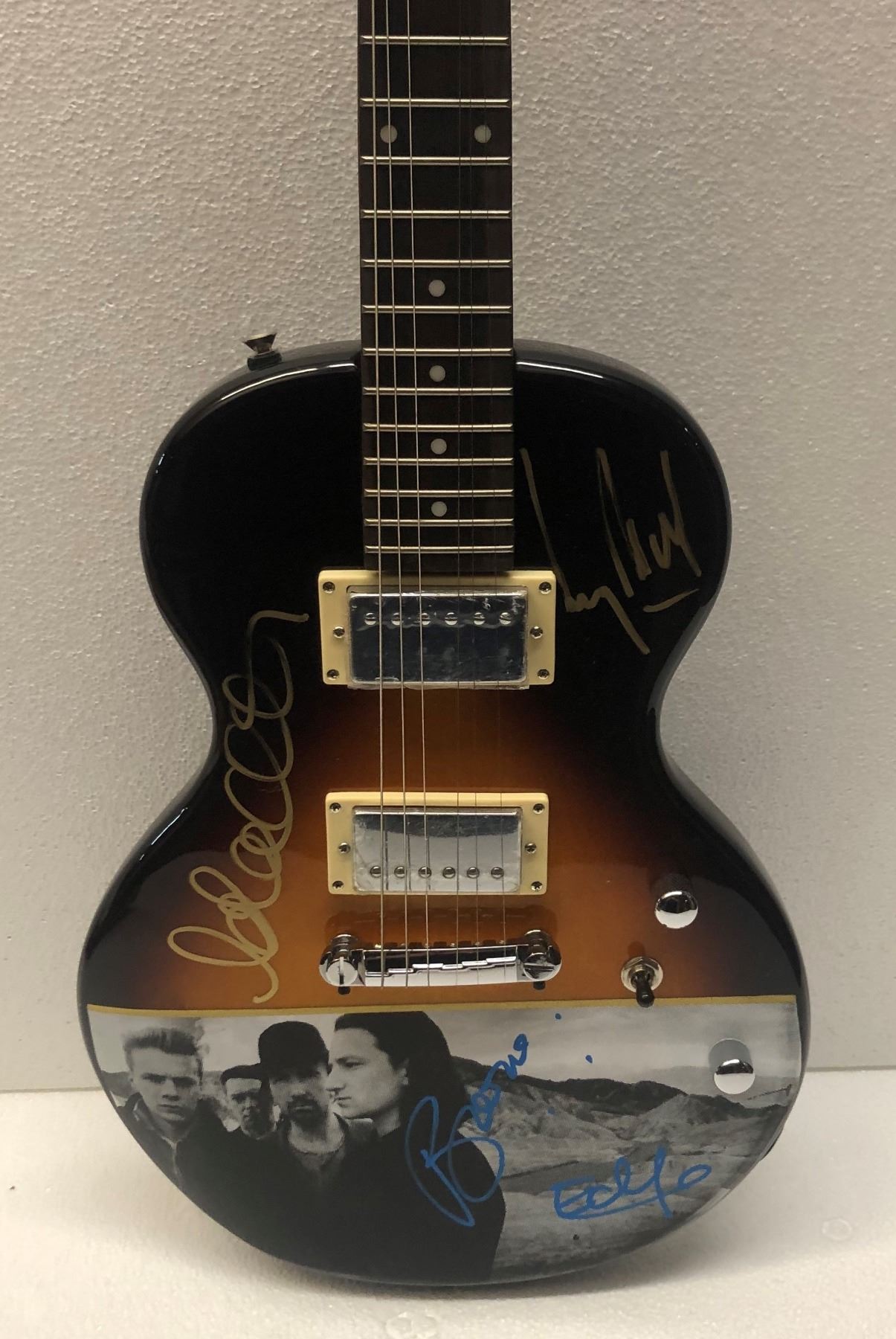 Signed by Bono, the Edge, Adam Clayton, and Larry Mullen Jr.