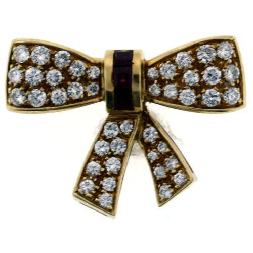 Van Cleef & Arpels Contemporary 1.50ct Diamond & 0.25ct Ruby Bow Pin in 18k Gold.