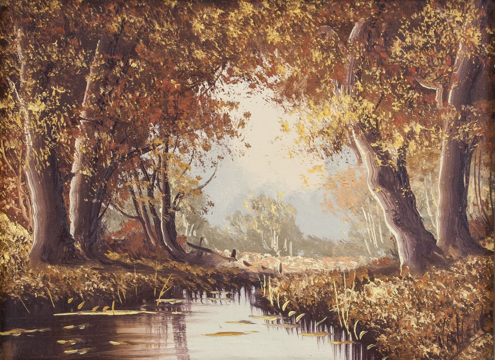 Oil on canvas, framed. Featuring a landscape scene of forest. Signed Verheul (1897-1971, Dutch). on the lower left corner. 30.5 x 40.5 cm (12.0 x 15.9 inches). Framed size: 41 x 51 cm (16.1 x 20.1 inches). PROVENANCE: Private European collection