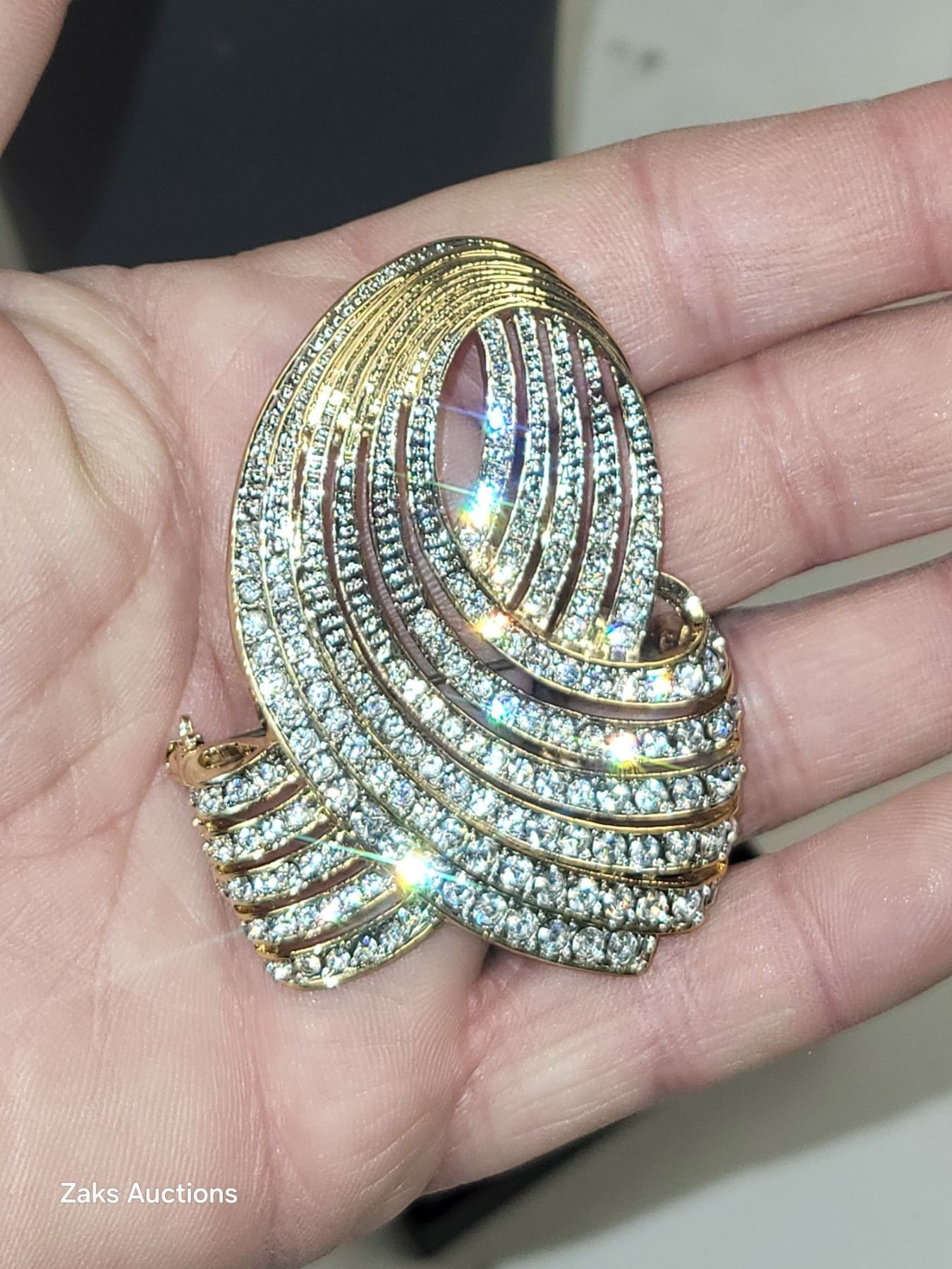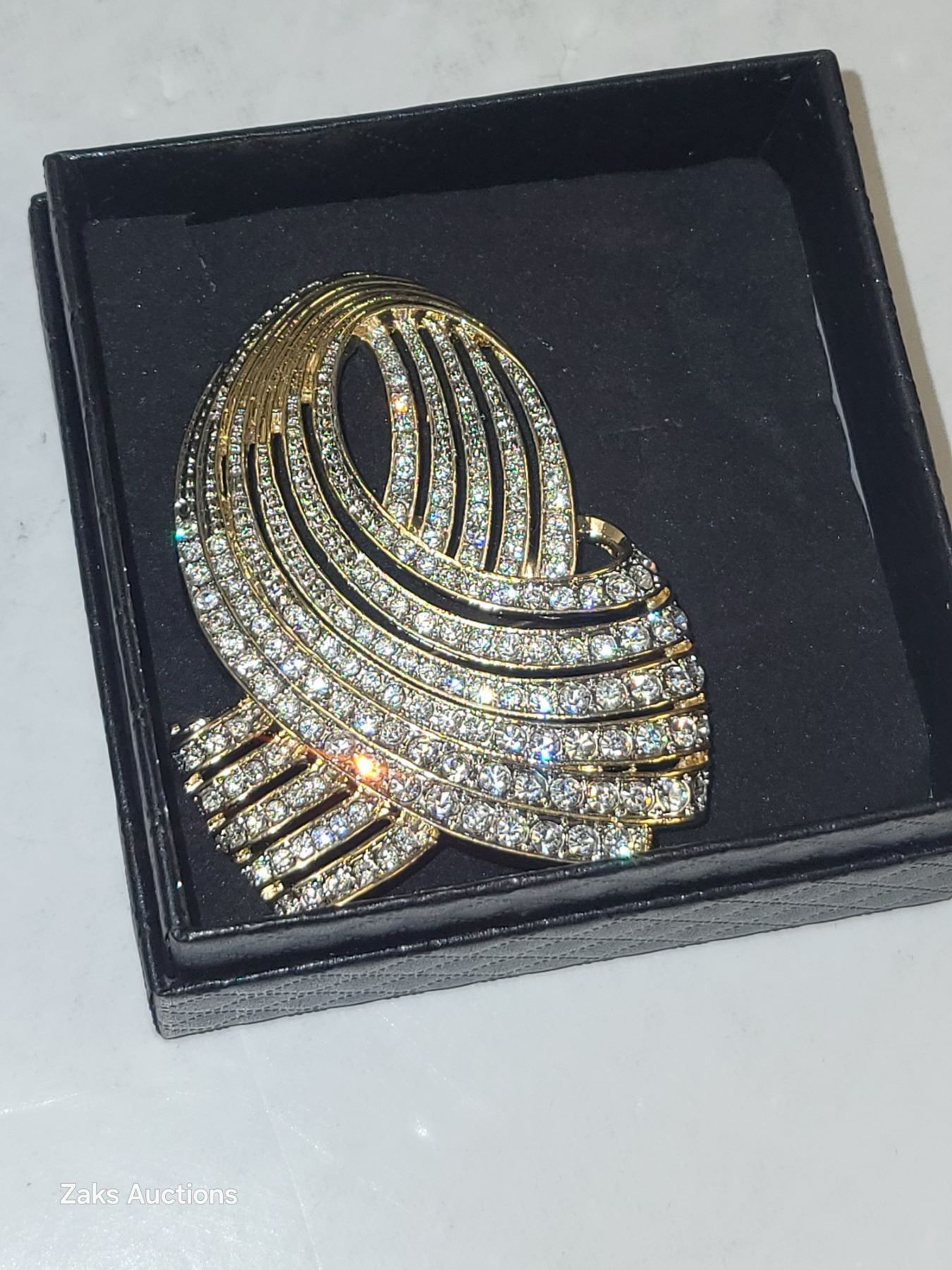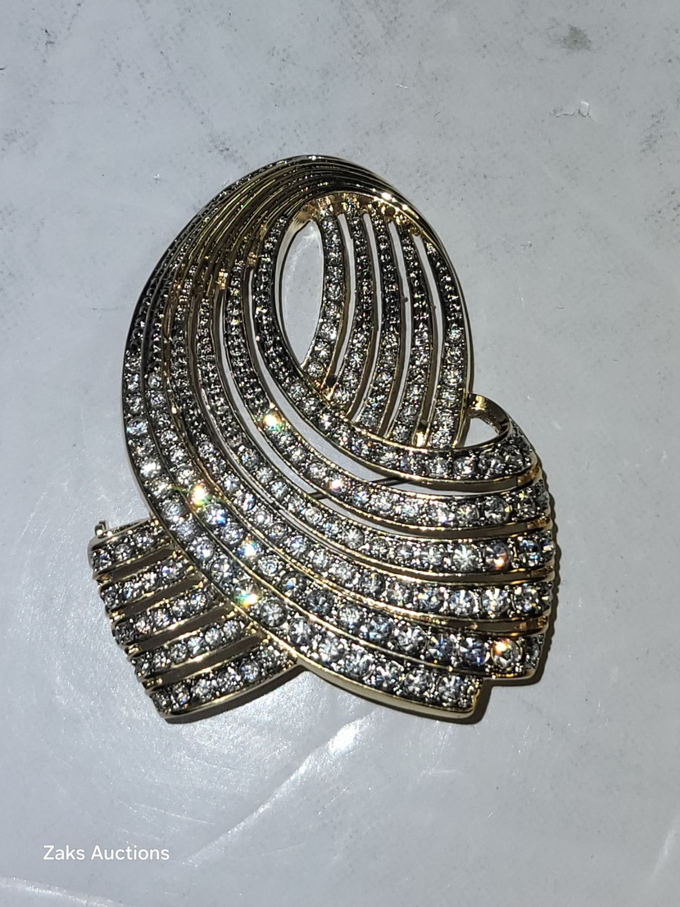 Signed Vintage Butler Crystal Goldtone Brooch