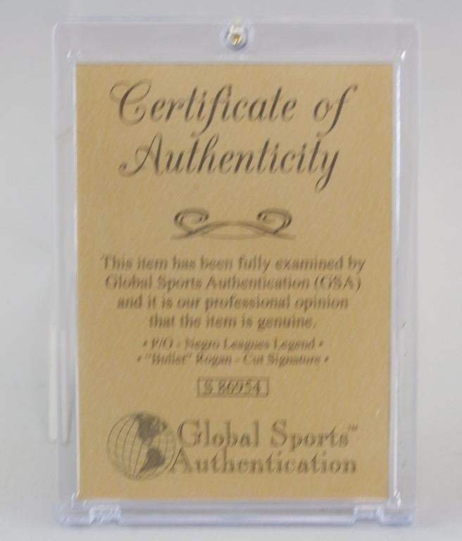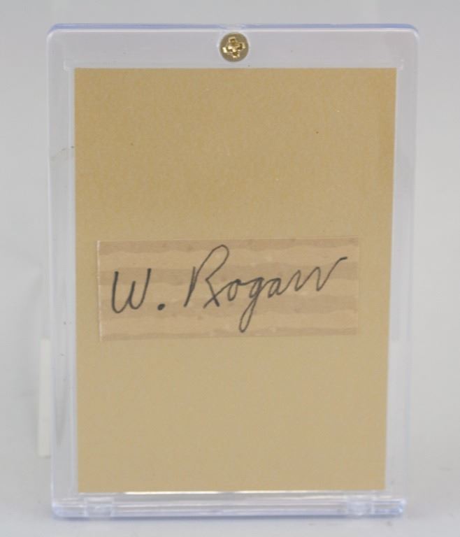"W. Rogan" signed on a small slip of paper. Enclosed in plastic case. Accompanied with COA. 2 x 5.2 cm, case size: 10 x 7 cm.