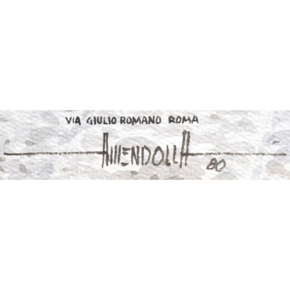 Framed watercolor on paper, "Via Guilio Romano, Roma", signed & titled lower left Amendolla ( Luis Ricardo Amendolla Gaspara, Mexico, 1939 - 2000 ), sight: 25 1/4" H X 17 1/2" W. Overall: 32" H X 25 1/4" W.