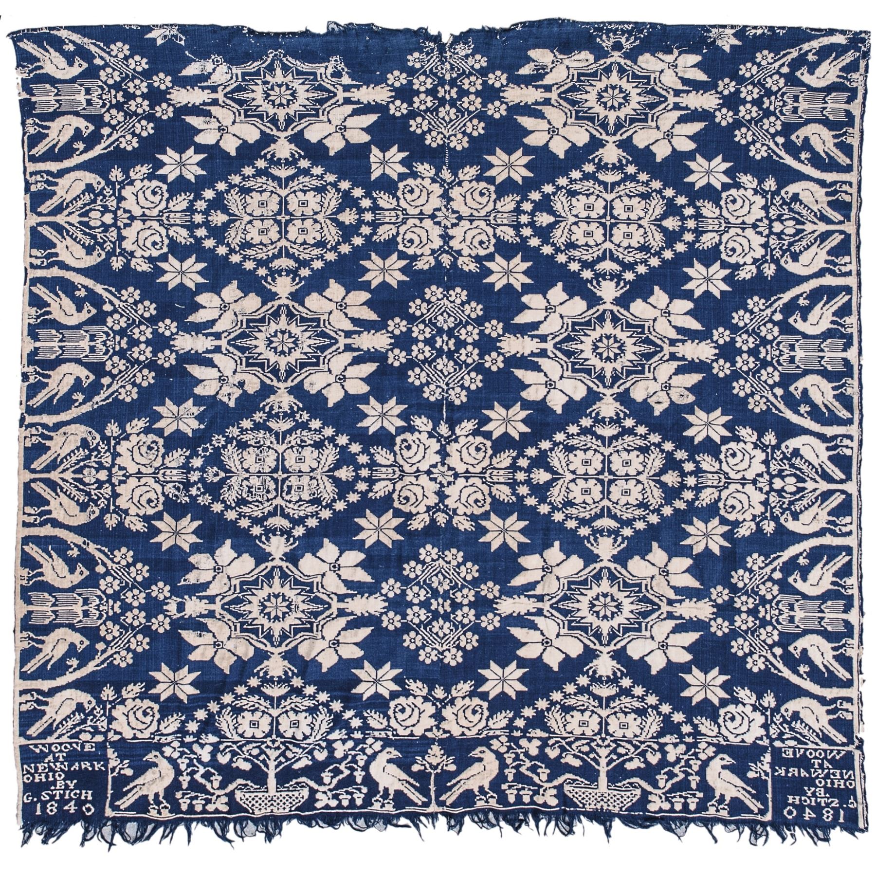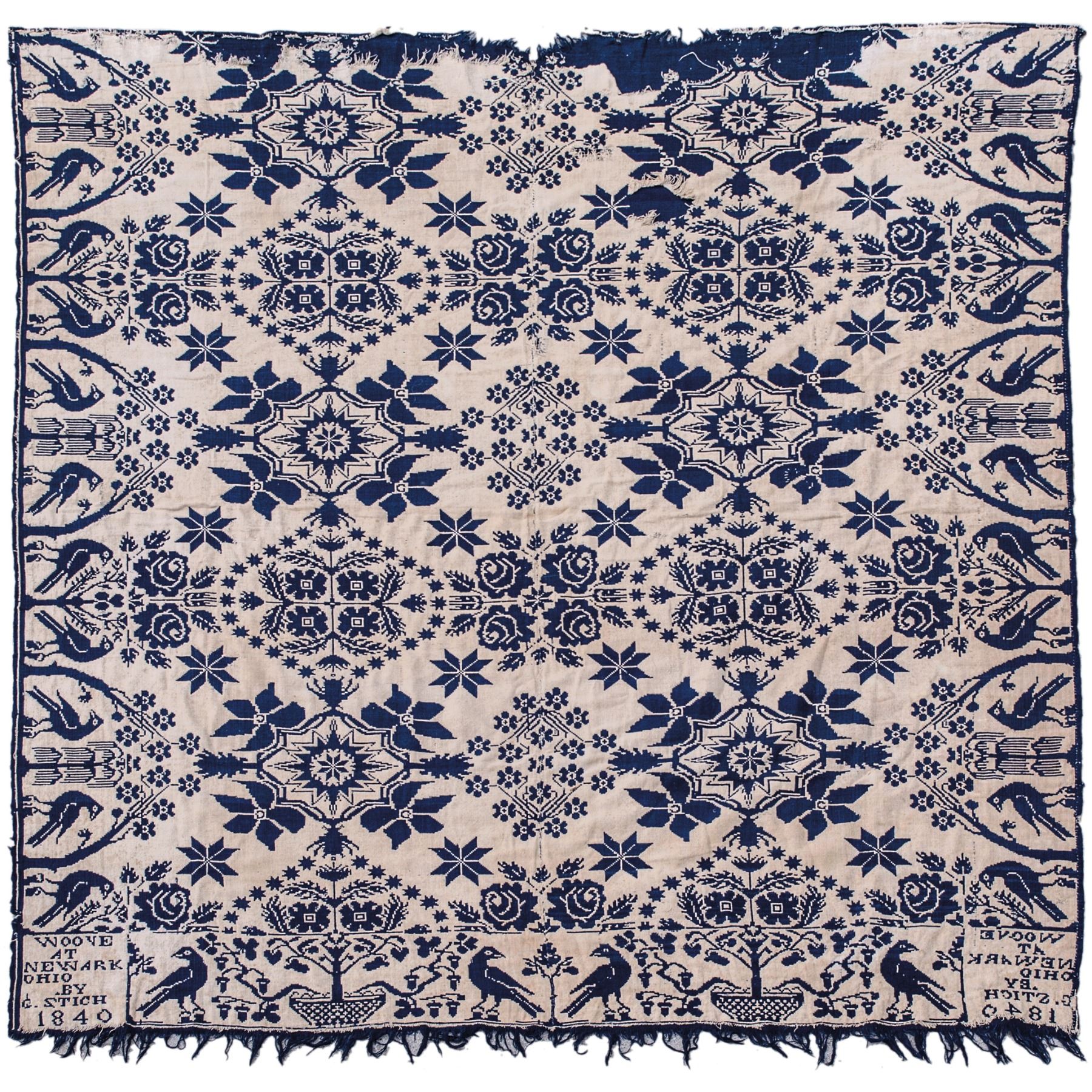 Jacquard Coverlet “Woove Newark Ohio by G. Stich 1840” Signed and Dated in its Corner Designs