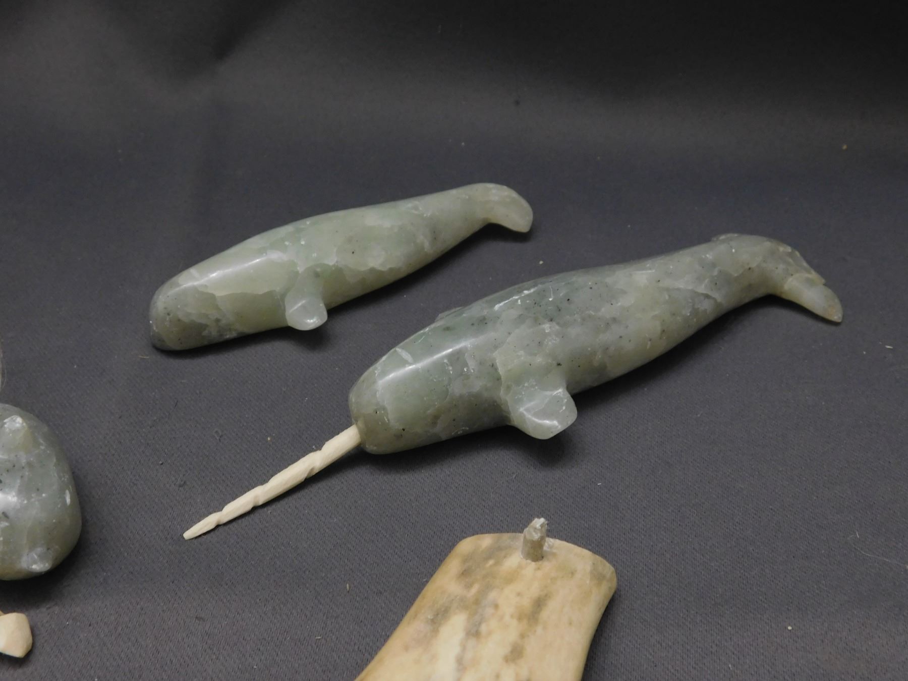 largest narwhal horn needs to be glued, human body has been reglued together. as is. pieces are 4" to 5".
