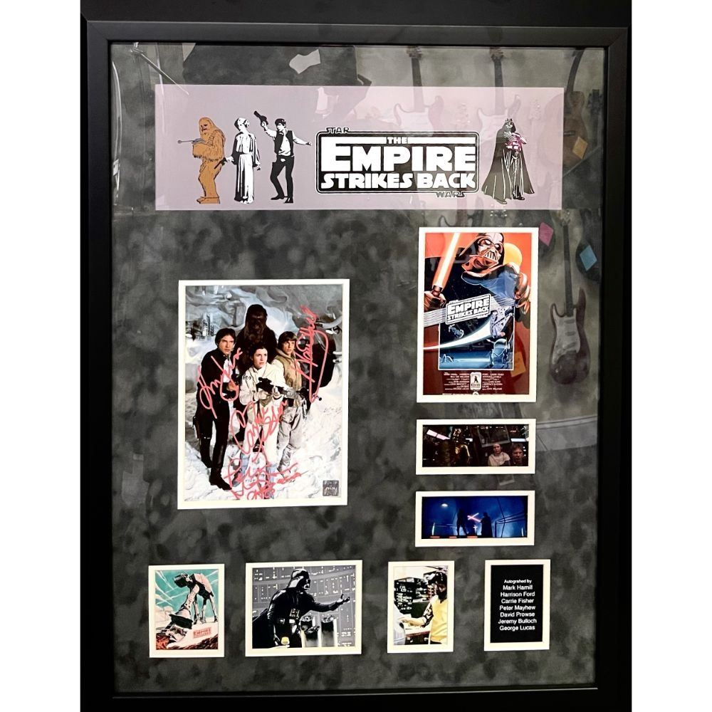 Signed by Mark Hamill, Harrison Ford, Carrie Fisher, Peter Mayhew, Daviod Prowse, Jeremy Bulloch, George Lucas