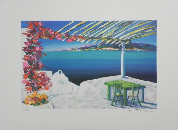 Who doesn't appreciate an ocean view... * Artist: FenechMedium: Litho print on paperSignature: Signed by artist, lower rightEdition: 101/390, lower leftImage size: 22 3/4" x 15" * Sheet size: 30" x 22" * Condition: Very good; minor staining to top margin that can be matted out *