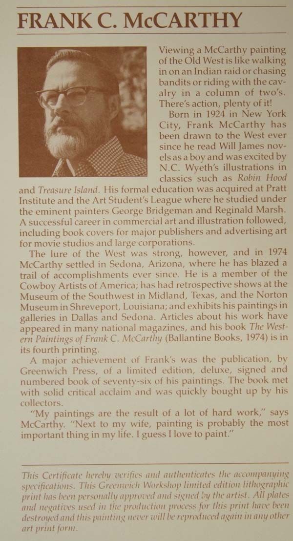 Signed and Numbered 901/1000 Frank C. McCarthy Print ''From the Rim'', signed and numbered in pencil by artist, beautifully framed and under glass, visual measures 19''W x 31''L, comes with provenance