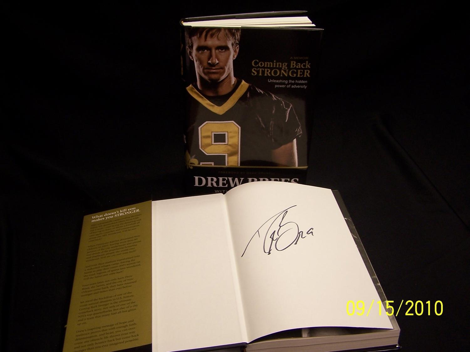 Signed copy of "Coming Back Stronger" by Drew Brees. & Two Purdue Pumpkins. Donor Leon Thacker