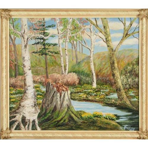 Original oil on panel landscape painting entitled ?Forest Landscape?, painted by H Pring