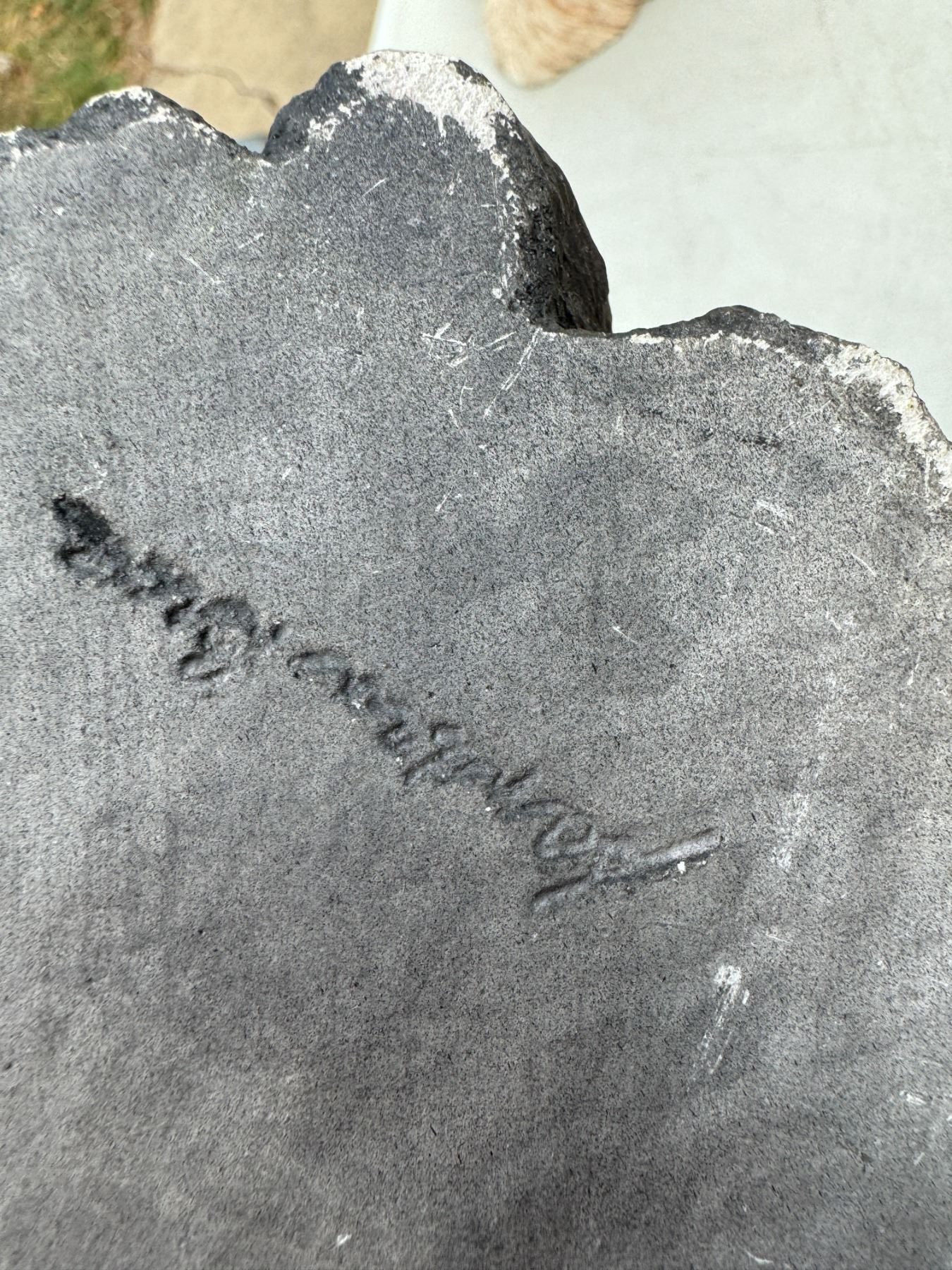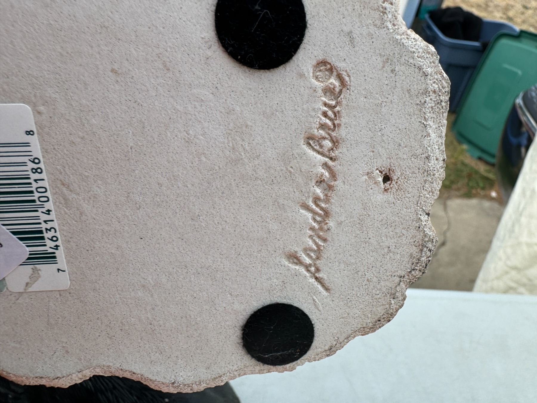 Signed, sandcast, dog decor