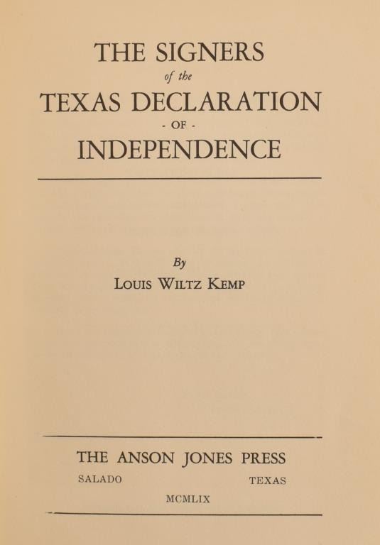 "The Signers Of The Texas Declaration Of Independence" By Louis Wiltz Kemp. This edition limited to 500 copies. 1959.