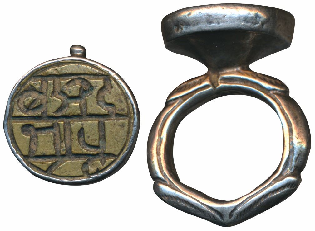Signet ring with round brass plaque held in a silver bezel, 11.57g, with Devanagari inscription in two lines Morta / ba Suda ????? / ? ???, undated, the term ‘Mortub Sud’ was stamped at the end of an official letter or document, indicating there is no further inscription to be added. It is a Deccani / Marathi corruption of the Farsi term ‘Murattab Shud’, meaning “put in order”, or “completed”. Extremely Fine, Rare.