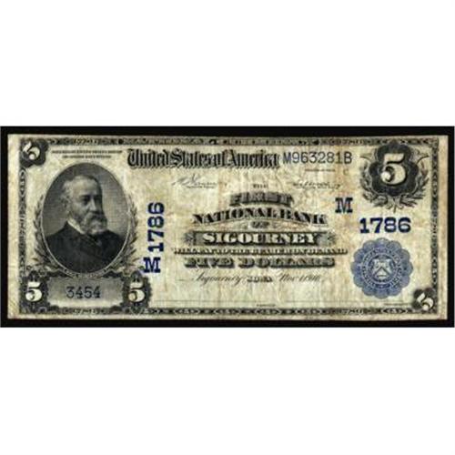 Sigourney, IA. $5 1902 Plain Back. Fr. 601. The FNB. Charter #(M)1786. Fine.